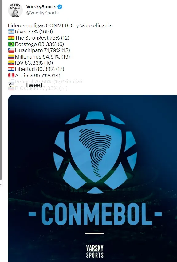 Además, a través de su cuenta de Twitter, mencionó que Alianza Lima tiene una eficacia del 85,71%, siendo el equipo con más influencia en el país.