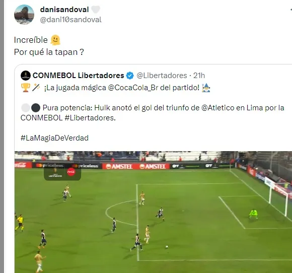 Mediante Twitter, el ente máximo del fútbol sudamericano, colocó una secuencia de la jugada previa al gol de Atlético Mineiro, que nace de una contra.