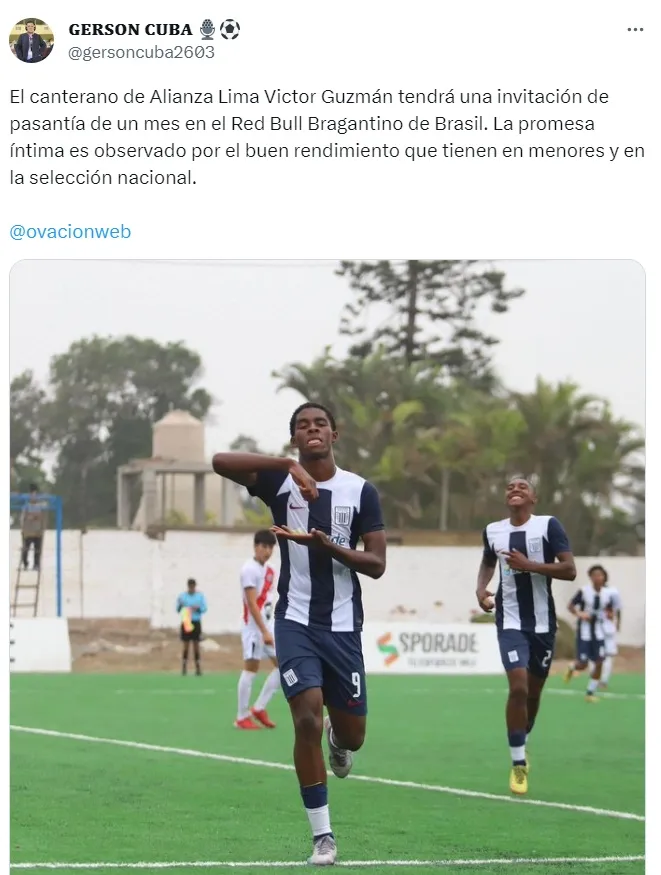 Contando con 17 años, Víctor Guzmán se encuentra en el cuadro de RB Bragantino de Brasil. Haciendo una pasantía, el crack de Alianza espera quedarse.
