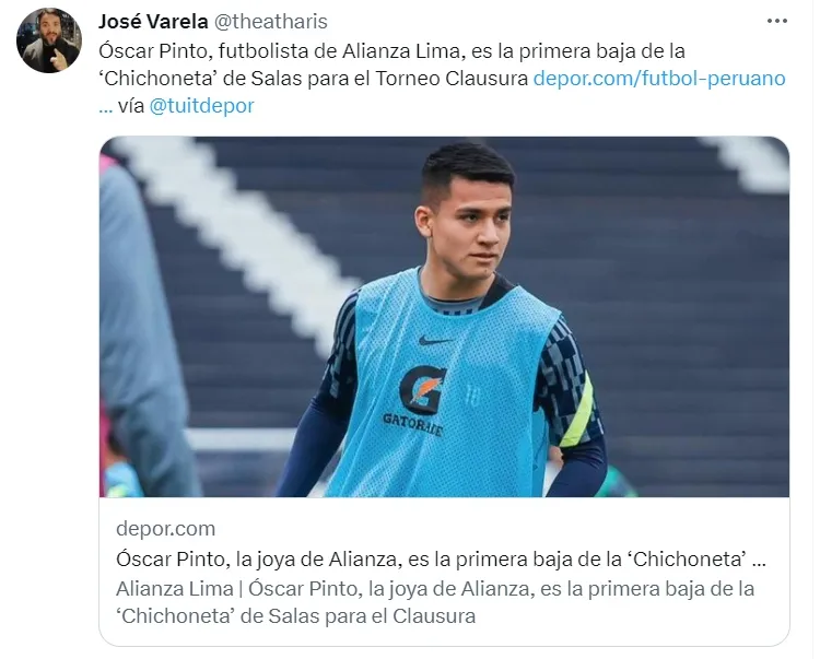 Así pues, el periodista José Varela informó que Óscar Pinto sale de Alianza Lima y se va para Academia Cantolao para el Torneo Clausura.