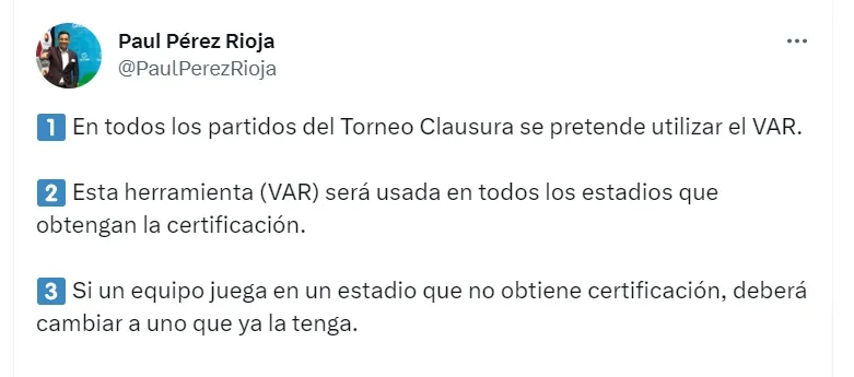 Si bien lo cierto es que el VAR se tiene que dar sí o sí en el Clausura, tal parece que se probará en la última fecha del Apertura.
