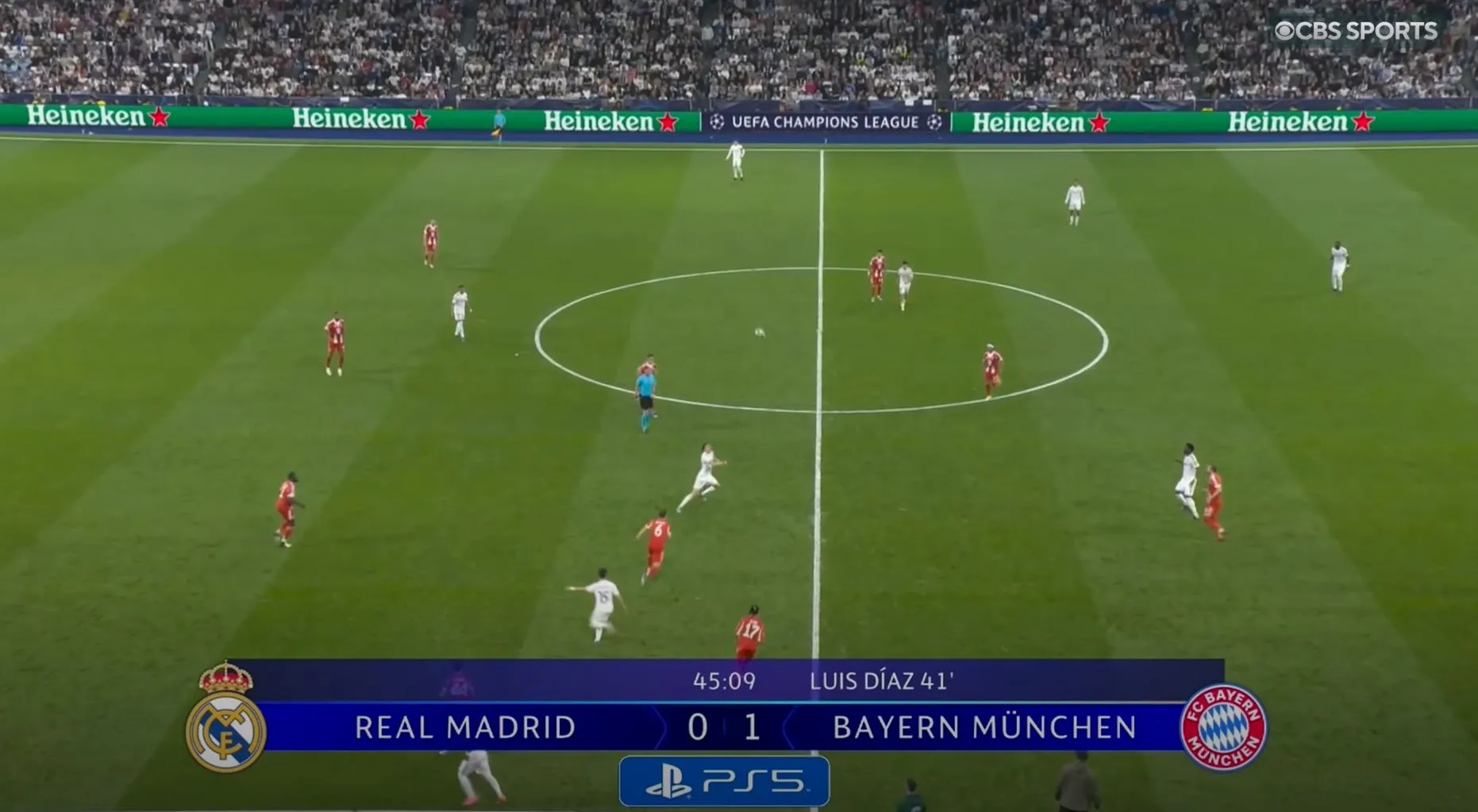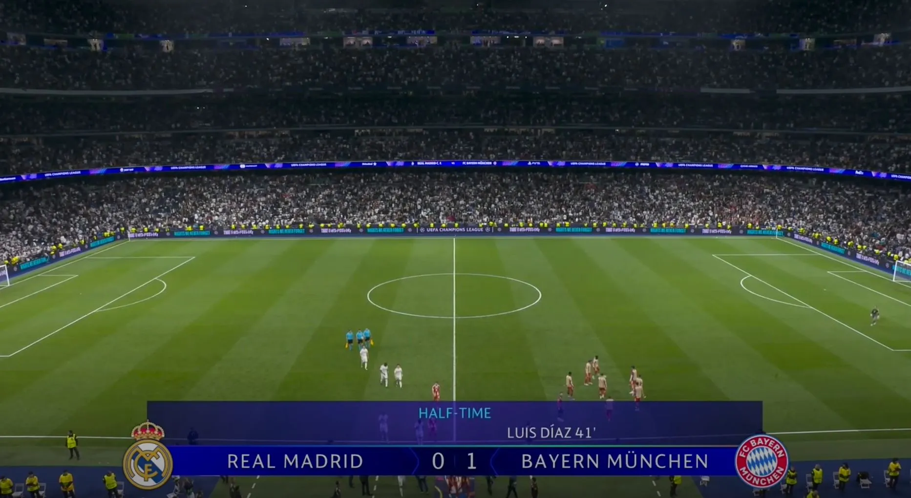 Real Madrid pierde 1-0 ante Bayern Múnich por la ida de los cuartos de final de la Champions League tras un golazo del colombiano Luis Díaz. El primer tiempo se mostró parejo, pero fue el portero Manuel Neuer el que tuvo las mejores intervenciones al salvar su arco de remates como el de Kylian Mbappé o Vinícius Júnior