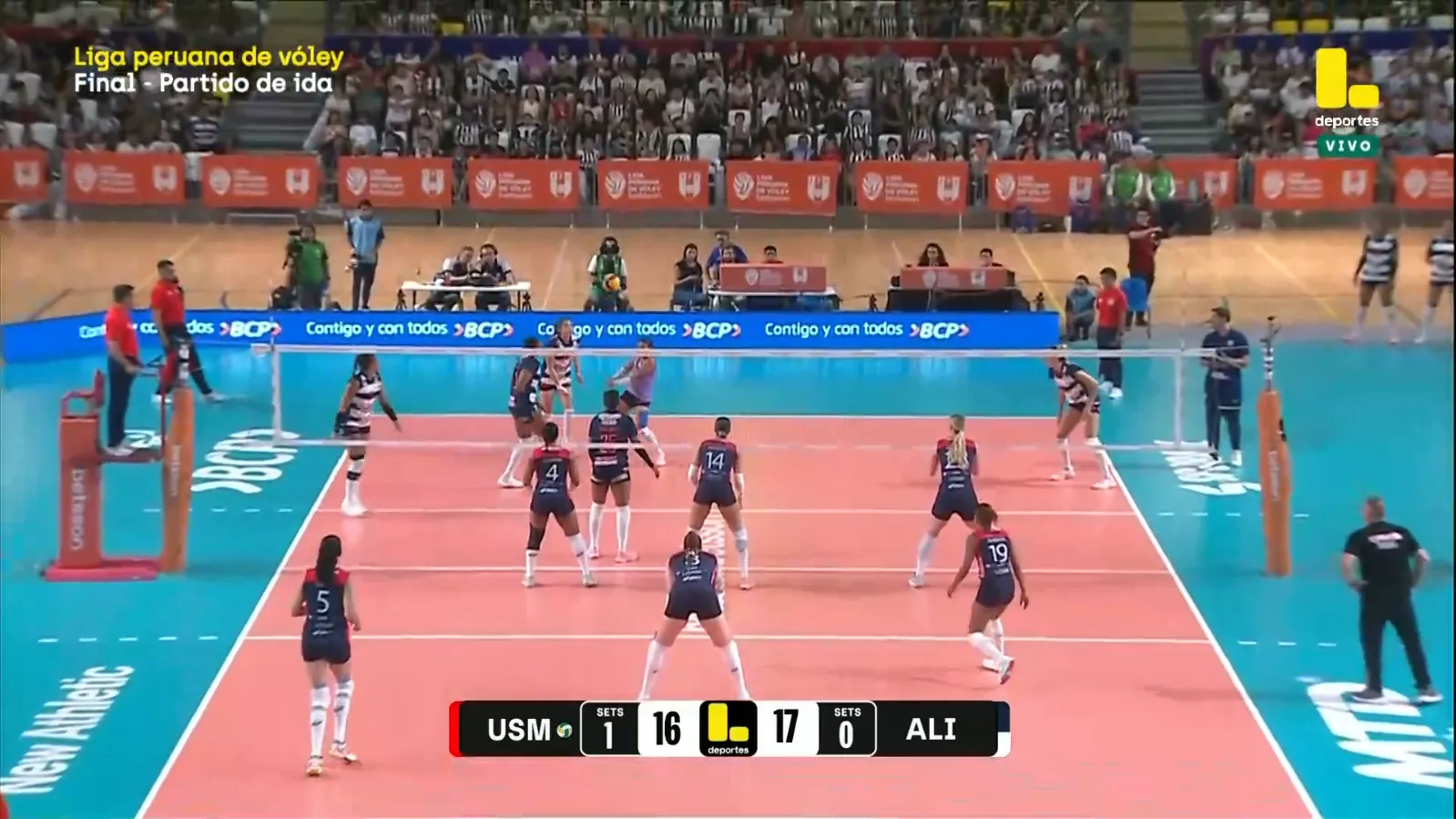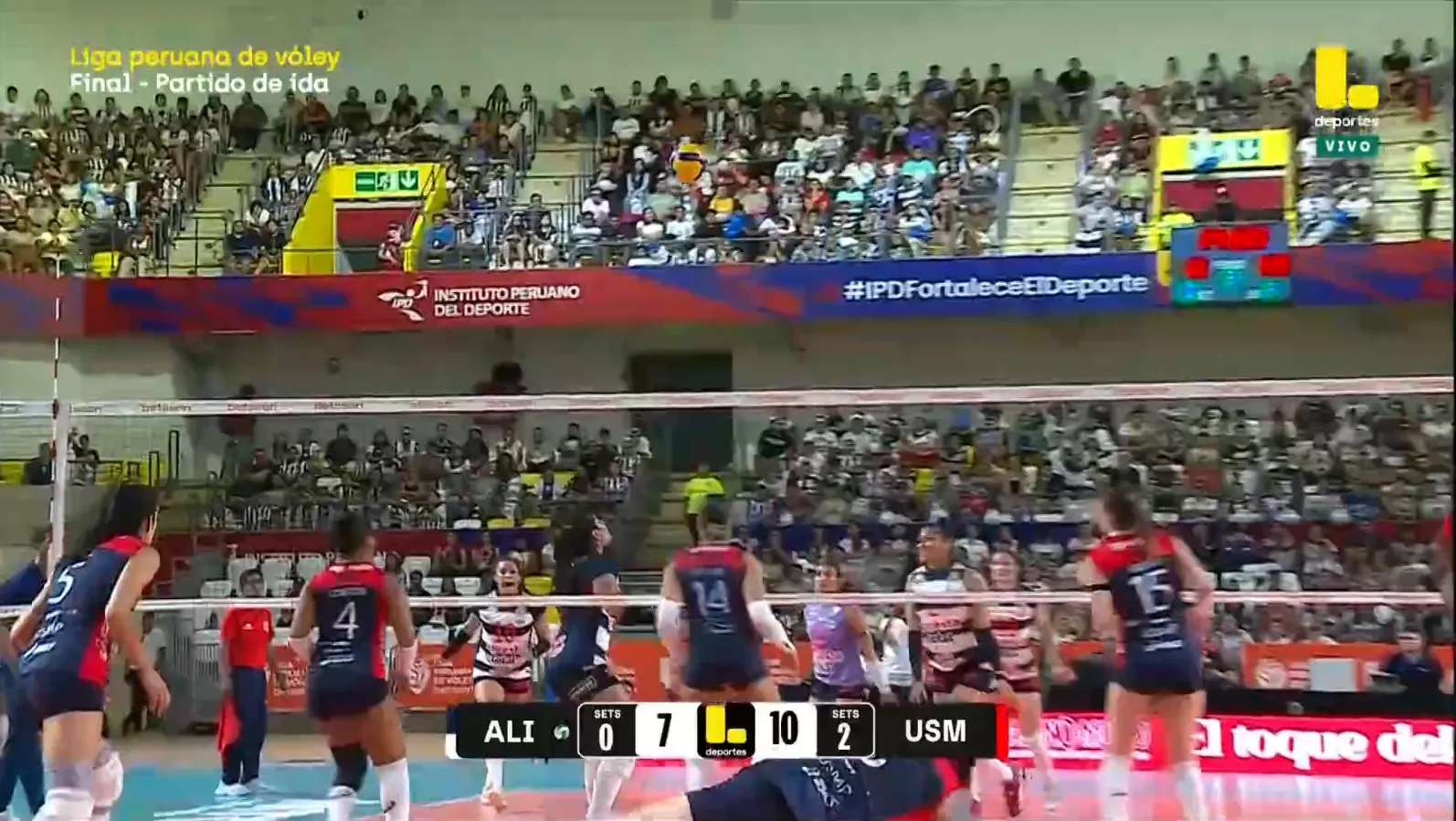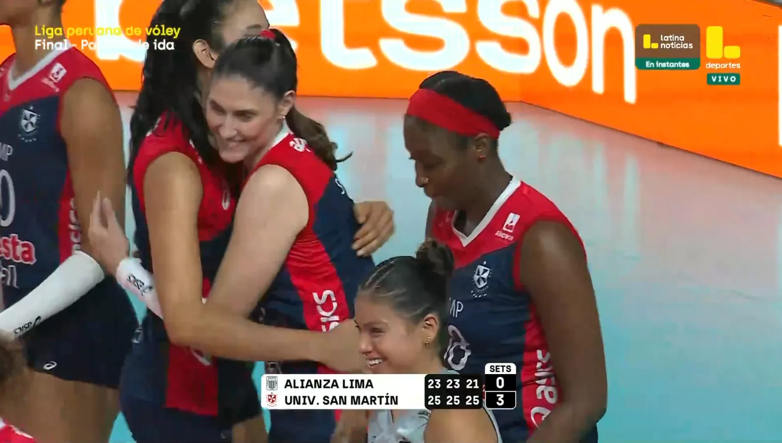 La primera final de la Liga Peruana de Vóley ya tiene dueña y es para el equipo de la San Martín. El conjunto de Santa Anita está cerca de llevarse el título nacional, esto después de vencer a Alianza Lima por un contundente 3-0 en el Polideportivo de Villa El Salvador.