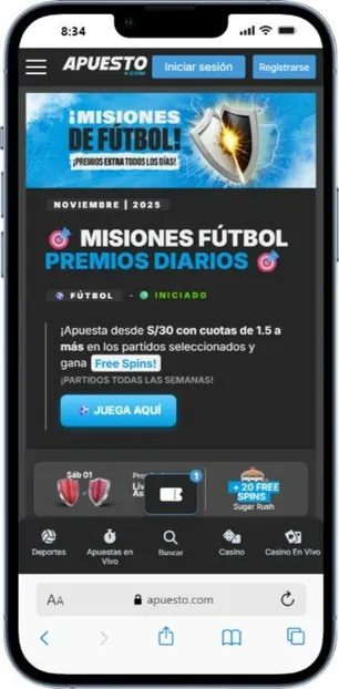 El bono de Bienvenida de Apuesto.com en 2026 ofrece dos opciones: Apuesta Gratis de S/30 o 30 giros gratis en el casino online. Como requisito indispensable hay que hacer un depósito mínimo de S/30.