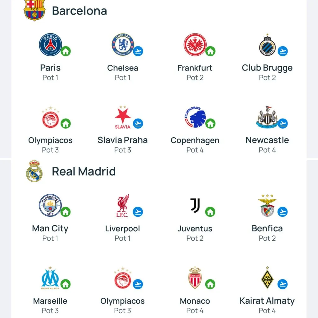 Para el Barça habrá finalmente duelo ante PSG, la final que no pudo ser en la edición anterior, ya que lo eliminó Inter en semifinales. Además, destaca sus dos viajes a Inglaterra para medirse ante Chelsea y Newcastle. Mientras que, como pasó con Real Madrid, deberá enfrentar a Olympiacos, aunque lo hará de local.