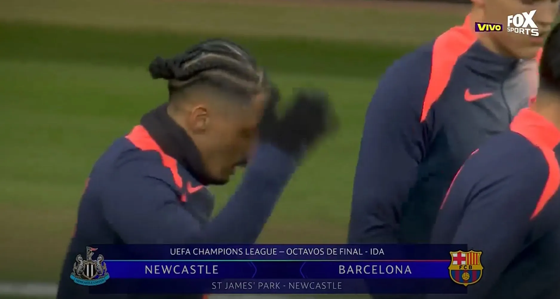 Los planteles de Barcelona y Newcastle ya están terminando el calentamiento y empieza el partido en breves por la ida de los octavos de la Champions.