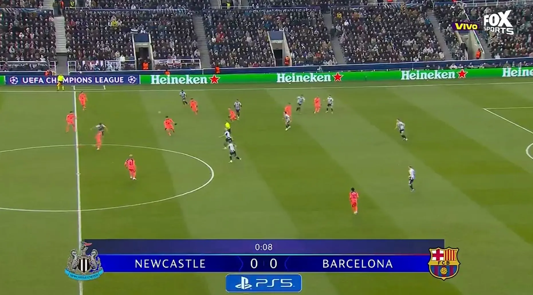 Ya rueda el balón y juegan Barcelona vs. Newcastle por la ida de los octavos de la Champions.