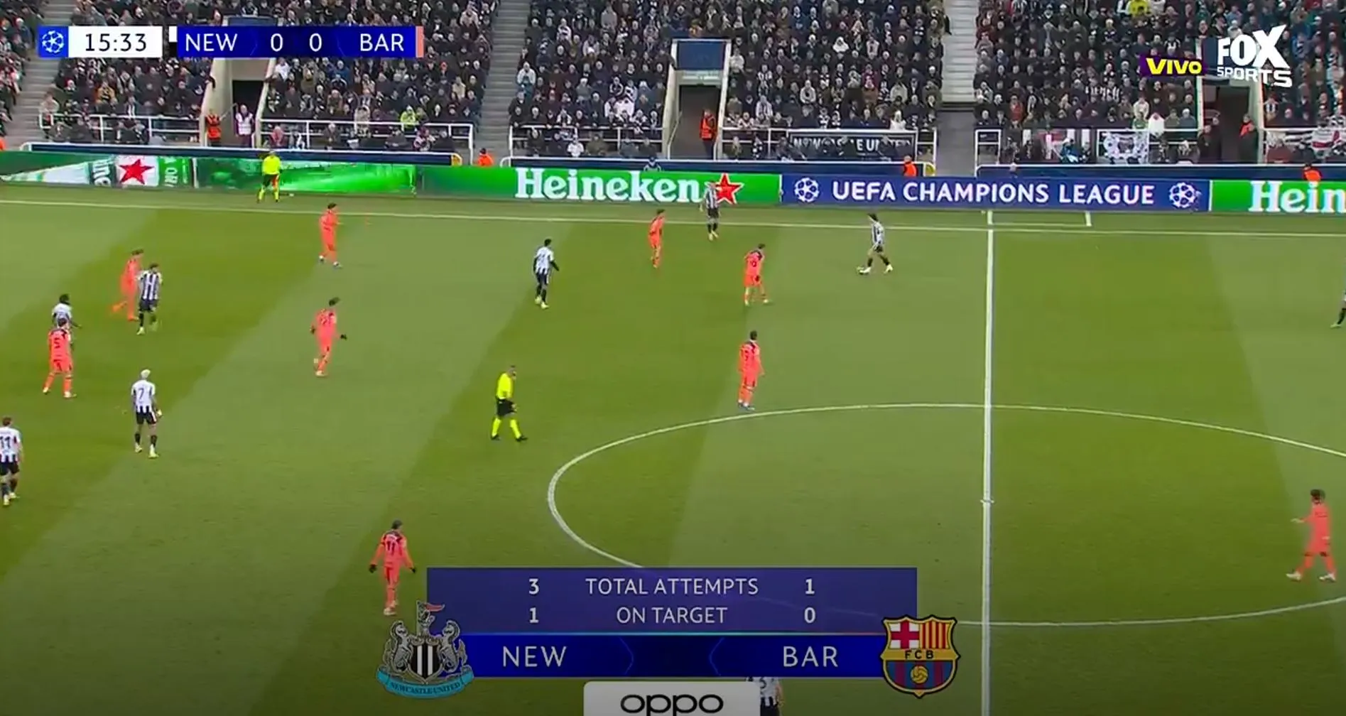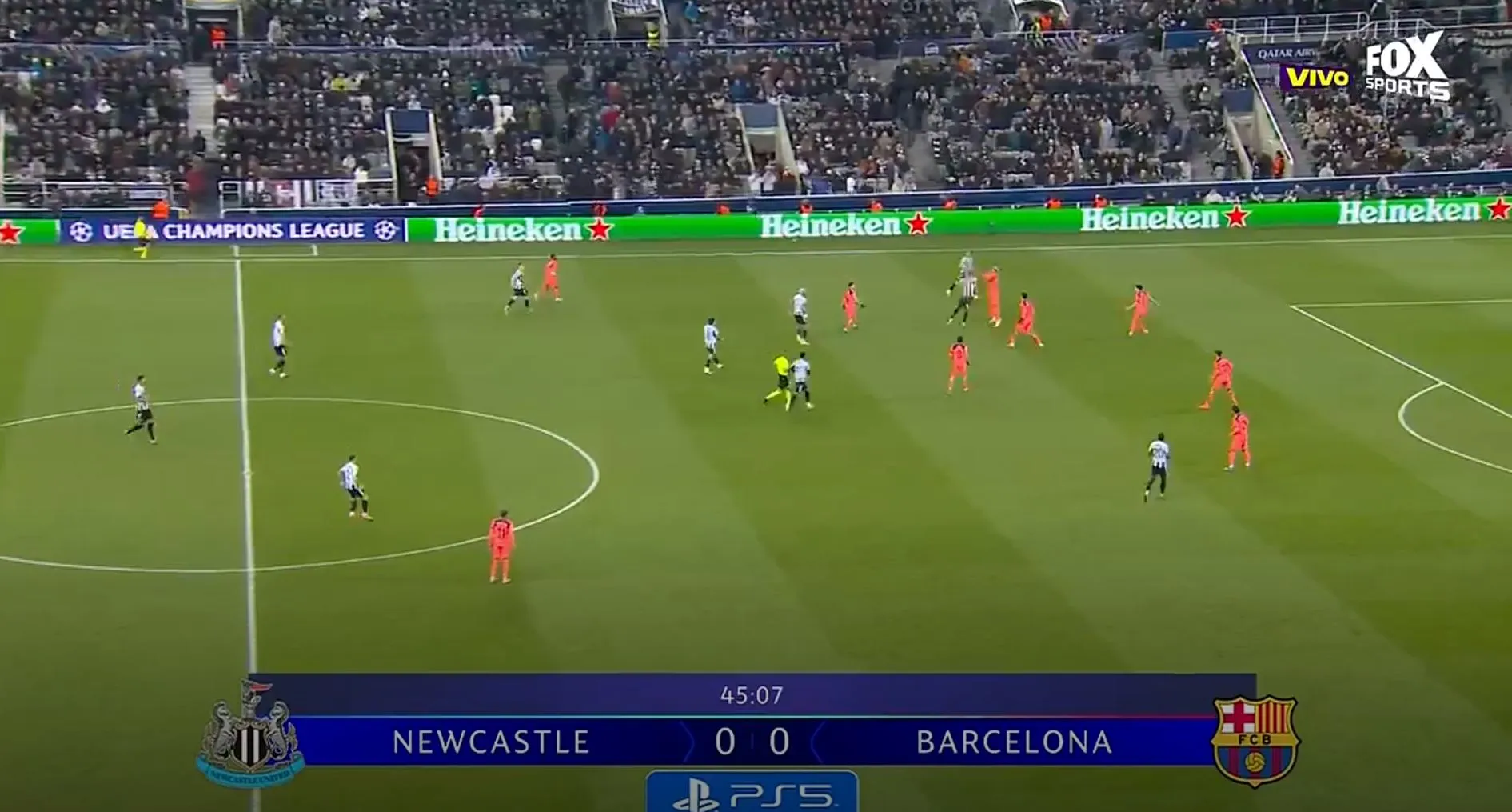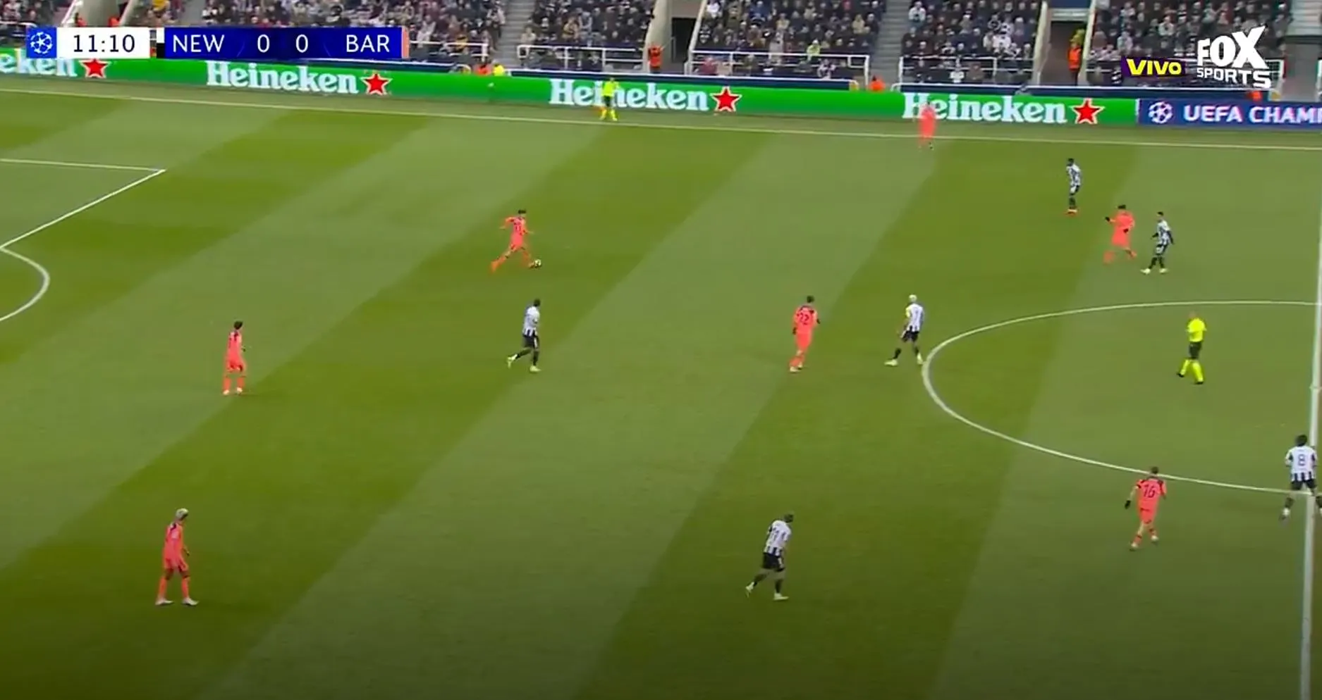 Hay una situación muy particular: cuando Barcelona la tiene busca posesión, cuando Newcastle la tiene: se lanzan como una flecha al ataque. Posturas distintas y formas de juego diferentes, veremos quién tiene resultados.