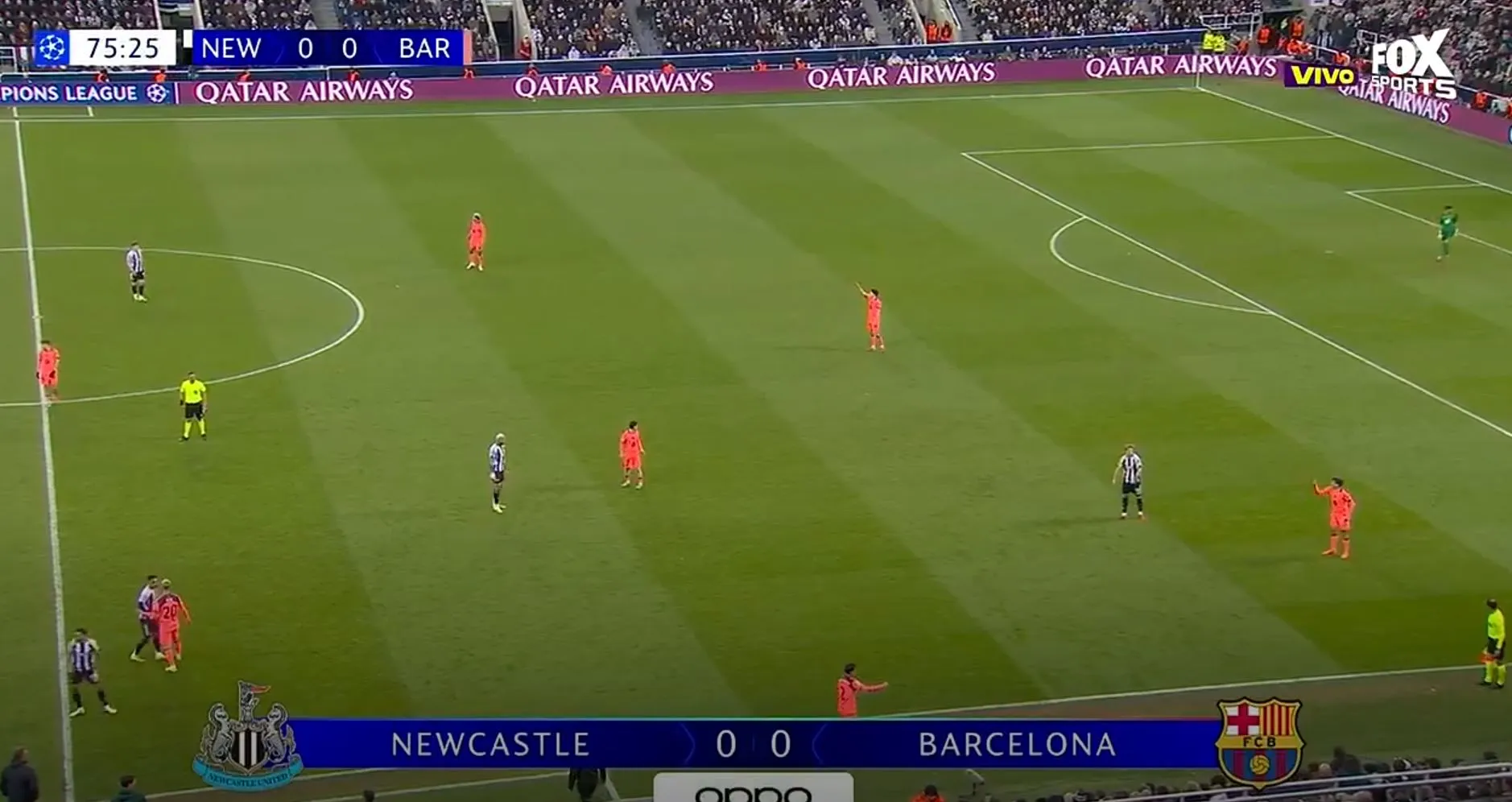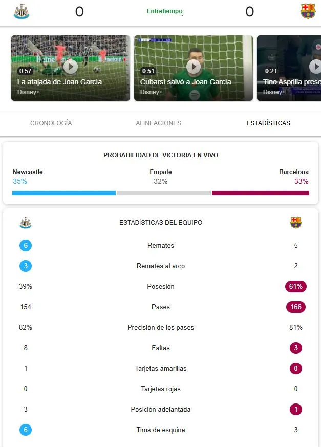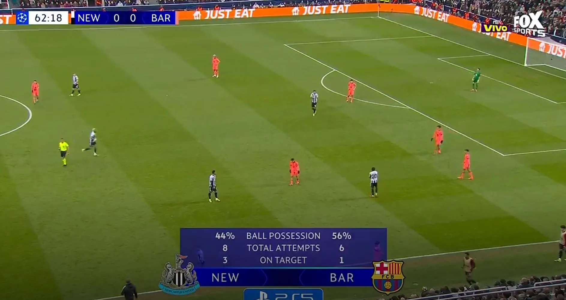 Hay una situación muy particular: cuando Barcelona la tiene busca posesión, cuando Newcastle la tiene: se lanzan como una flecha al ataque. Posturas distintas y formas de juego diferentes, veremos quién tiene resultados.