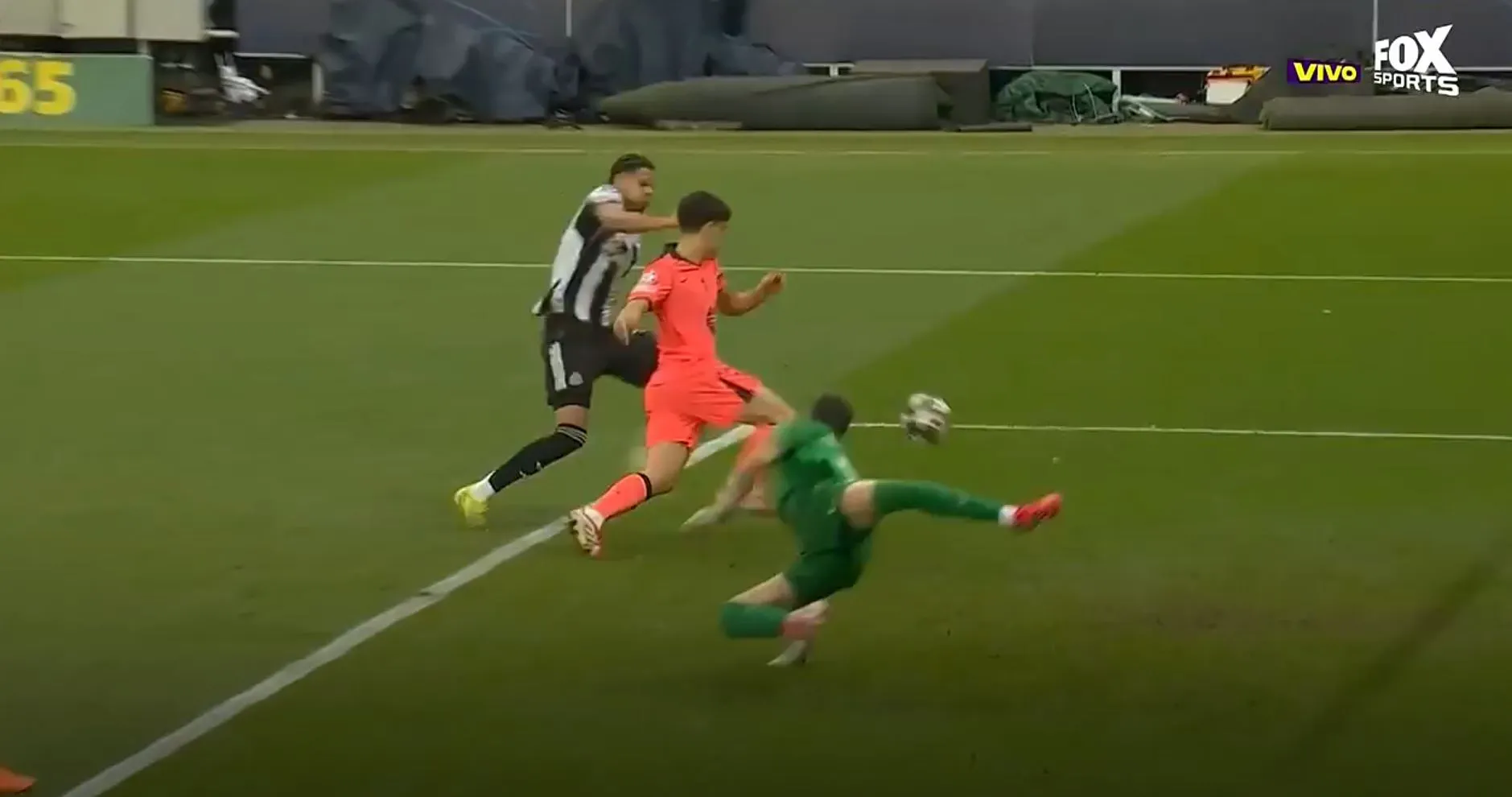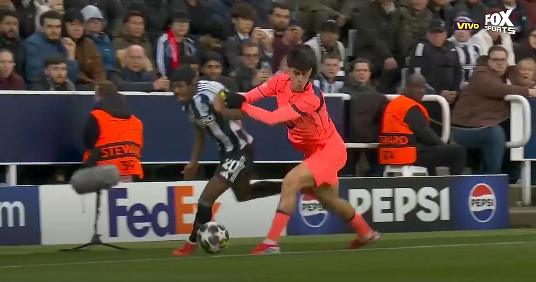Bernal tiene que recurrir a la falta para detener el avance de Elanga. Gran partido del extremo del Newcastle, que seguro ya tendrá opción de gol. Mientras tanto, Barcelona sigue dormido.