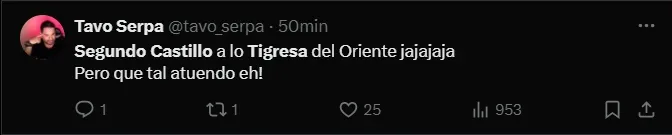 “Segundo ‘La Tigresa del Oriente’ Castillo“, “Monumental elegancia. Second Castillo/La Tigresa del Oriente“, “Gran homenaje de Segundo Alejandro Castillo al Papa Peruano. Hoy se vistió de La Tigresa del Oriente” y “Segundo Castillo a lo Tigresa del Oriente jajajaja, pero que tal atuendo eh”; son algunos de los comentarios más llamativos en referencia al traje del DT ecuatoriano.