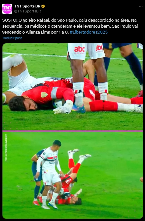 En el Alianza Lima vs. Sao Paulo se dio una jugada que asustó a todos, el portero Rafael cayó con la nuca dentro del área y quedó inconsciente. Esto alarmó a los jugadores que pidieron de forma inmediata la asistencia médica para que puedan llegar a atenderlo lo más pronto posible.