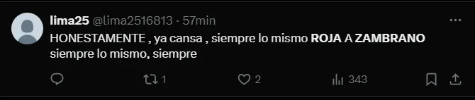 “Honestamente, ya cansa, siempre lo mismo. Roja a Zambrano.
