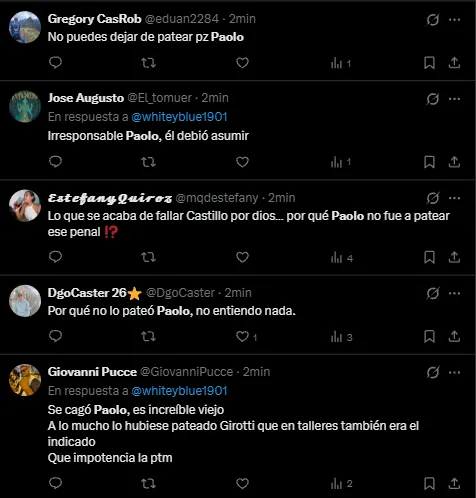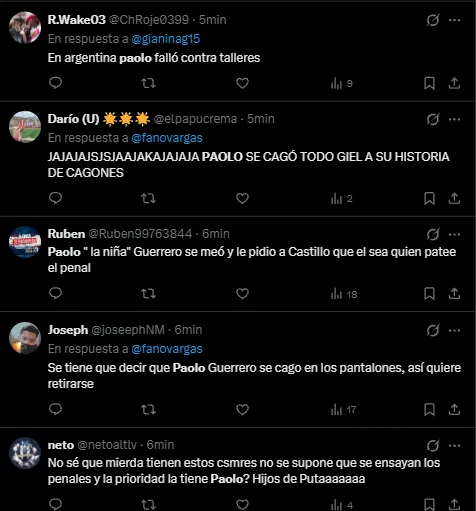 En la red social X (Twitter), hubo muchos comentarios en contra de Paolo Guerrero tanto de hinchas de Alianza Lima como de fanáticos peruanos. Entre los aficionados blanquiazules hubo lamento, pero sobre todo, bronca y hasta insultos para el atacante de 42 años.