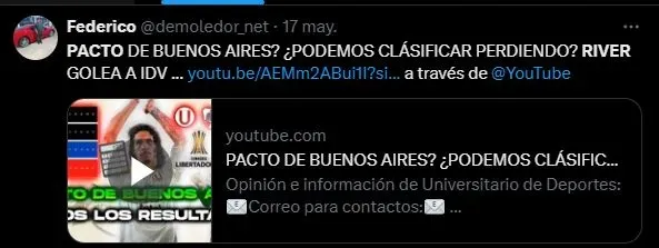 Desde ya podemos decir que no hay evidencia concreta que confirme la existencia de un “Pacto de Buenos Aires” entre hinchas de Universitario de Deportes y River Plate para arreglar un empate en la última fecha de la fase de grupos de la Copa Libertadores 2025. Lo cual es un punto a favor de todo lo que se pueda especular de ahora en adelante.