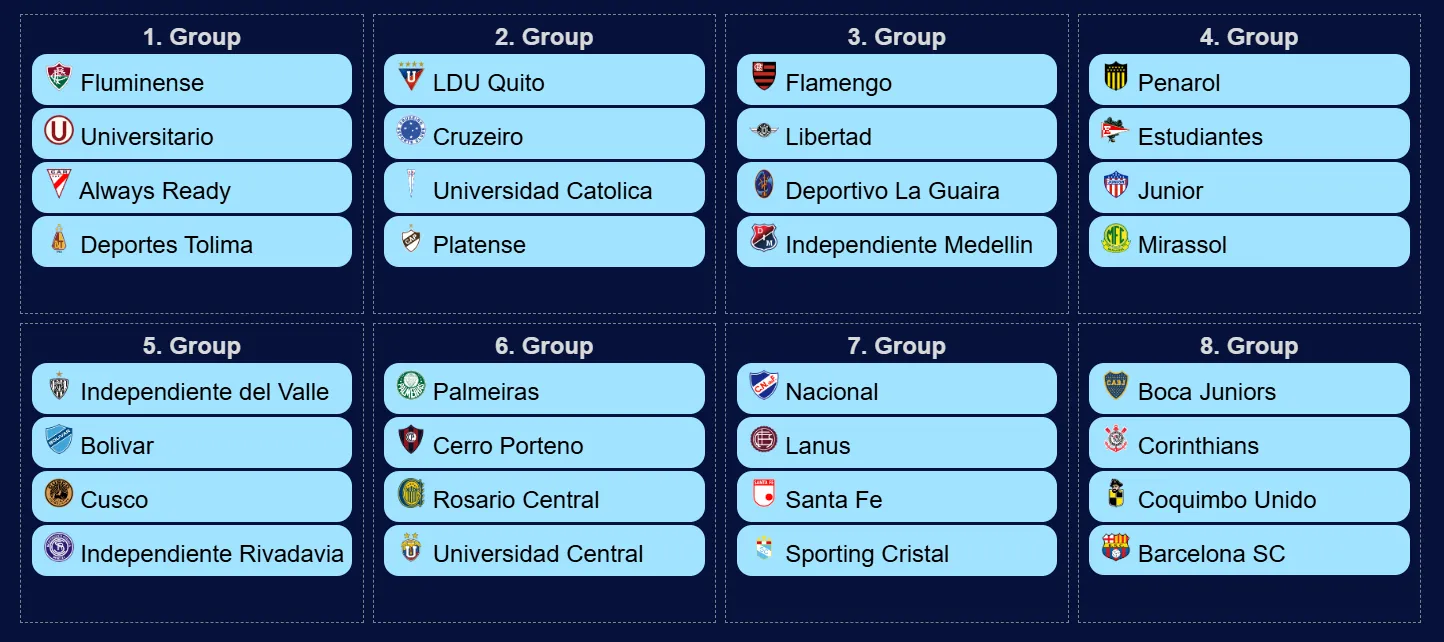 Los bolilleros del sorteo de la fase de grupos de la Copa Libertadores 2026