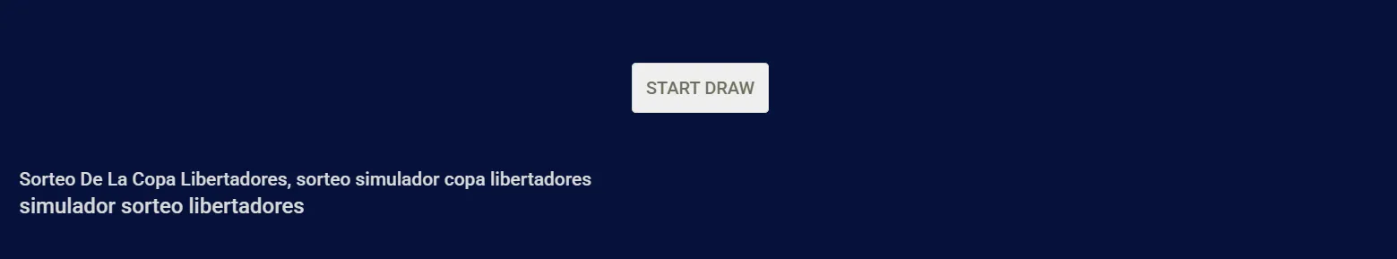2) Te encontrarás con el siguiente menú, donde debes posicionarte en la opción ‘CONMEBOL COPA LIBERTADORES’ y luego darle clic a la opción “START DRAW”, para indicarle a la herramienta que comience a combinar aleatoriamente a los equipos en sus respectivos grupos.