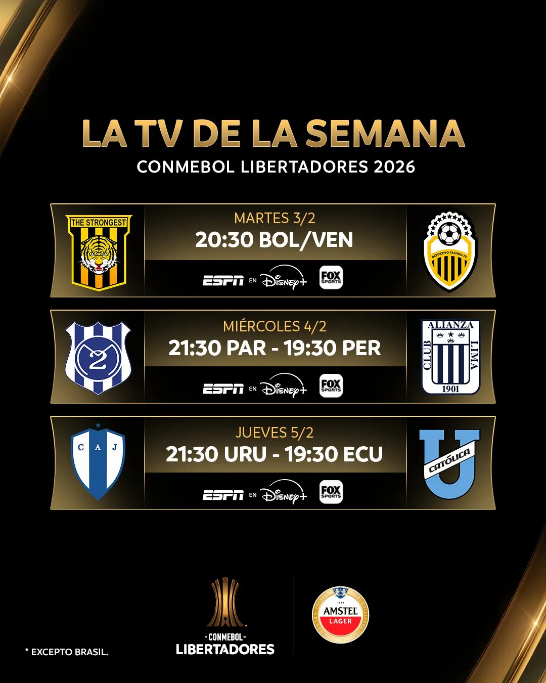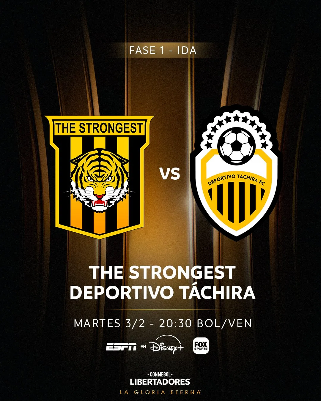 La Copa Libertadores da inicio a lo grande este año 2026 con un partido de altura. eEl conjunto de The Strongest se enfrenta a Deportivo Tachira en un duelo de gran nivel en busca de avanzar a la siguiente etapa. Este martes 03 de febrero en el Hernando Siles de la Paz desde las 19:30 horas de Perú se enfrentarán . Duelo que se transmitirá en ESPN y Disney+. Mientras que el minuto a minuto va por Bolavip Perú.