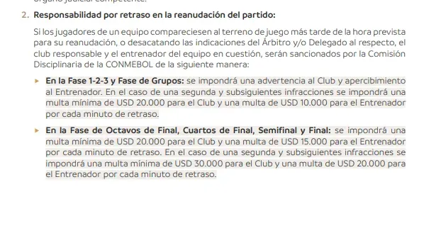 En este caso, el Artículo 5.1.11.6 numeral 2 nos habla con respecto al retraso de los partidos por medio de la demora de jugadores o miembros del cuerpo técnico, en este caso se hace el reclamo en específico por el entrenador uruguayo.