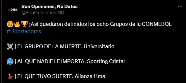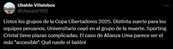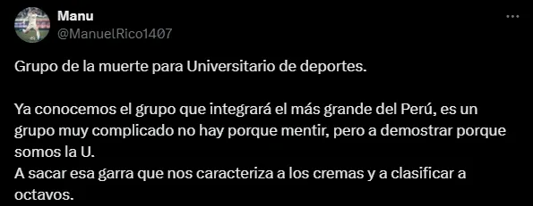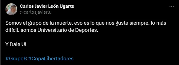 “Universitario al grupo de la muerte“, se leyó en varias publicaciones de X (Twitter). También desde Ecuador hubo comentarios parecidos tanto para Barcelona como para Independiente del Valle. Mientras que en River ven un grupo no sencillo, pero que sí están obligados a pasar.