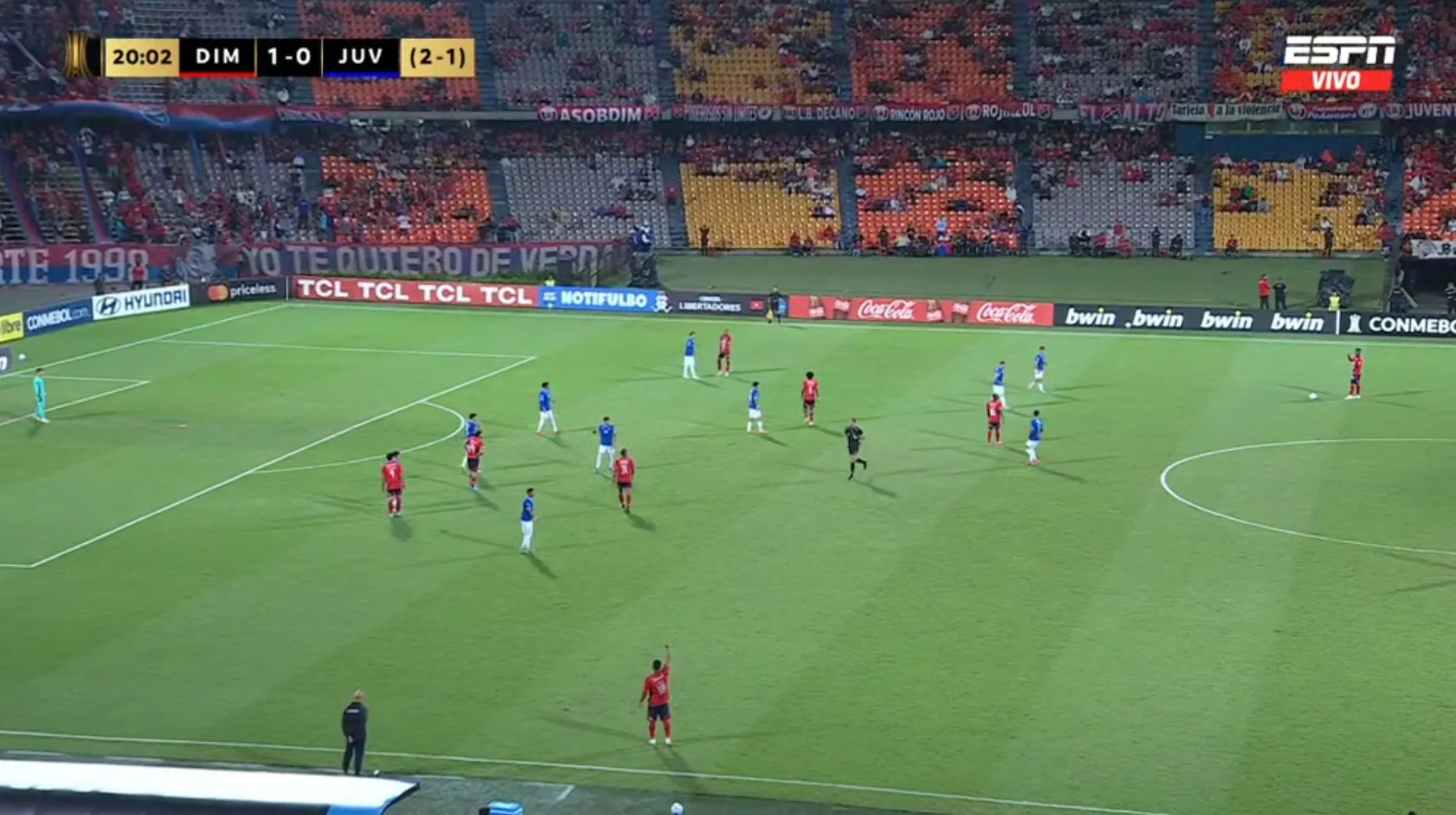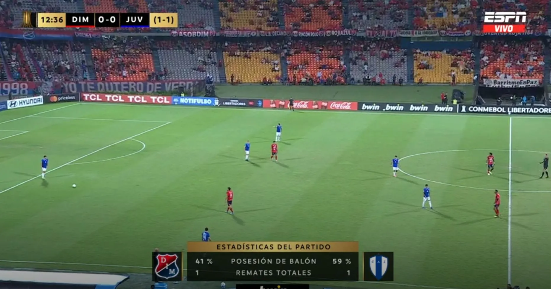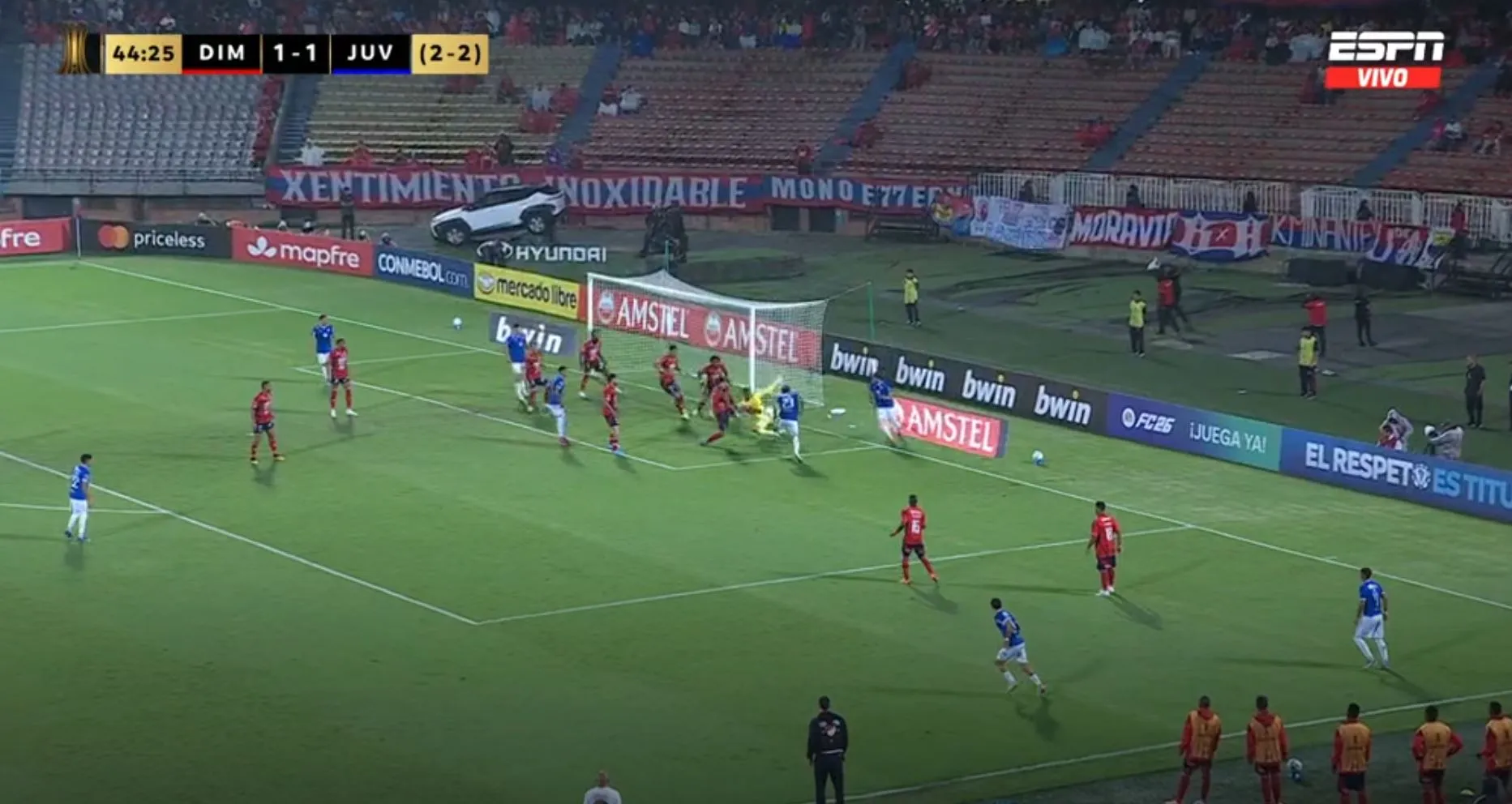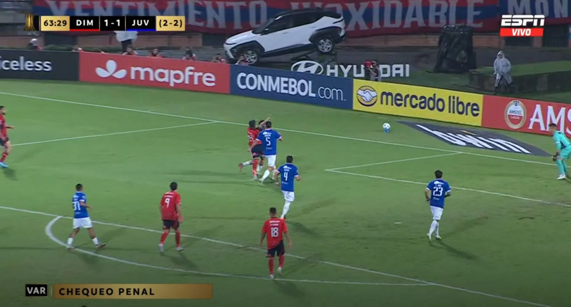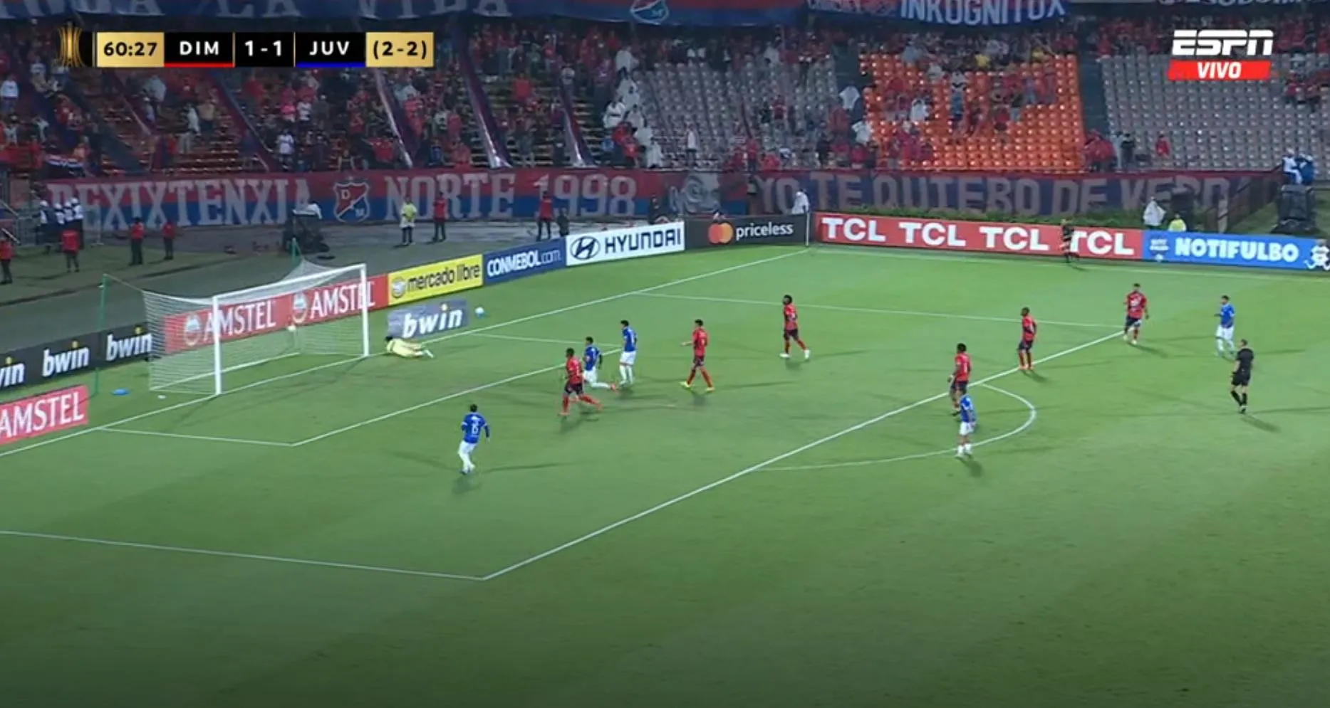 En una acción en la que pasó de todo, al final los jugadores de Medellín pedían penal, pero el árbitro no lo vio así y se salvó Juventud. Sigue empatado el partido por el pase a la fase de grupos de la Libertadores.