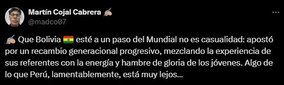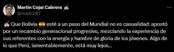 Bolivia no hizo nada nuevo ni loco, solo se atrevió a hacer el cambio generacional a tiempo. Algo que en el Perú muchos tuvieron miedo de hacerlo y esto terminó costando caro. Pues al tener a los mismos jugadores de eliminatorias anteriores, cansados y con un presente malo, solo dio problemas en vez de soluciones.