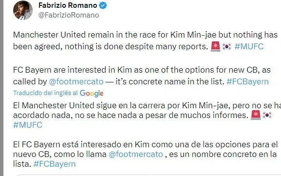 Asimismo, el periodista Fabrizio Romano, informó a través de su cuenta de Twitter, que el Manchester United también quiere al futbolista, sin embargo, aclaró que, a pesar de tener varios informes sobre el jugador, no han llegado a un acuerdo.
