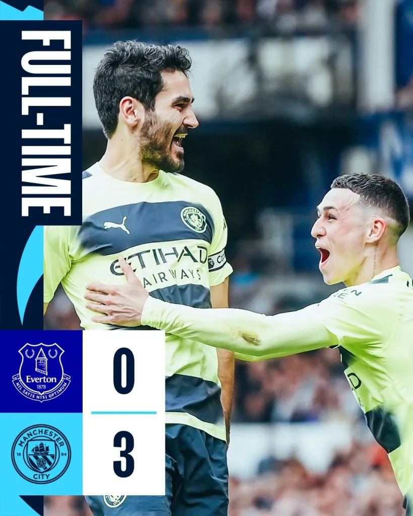 Los goles del Manchester City, esta mañana ante el Everton en la ciudad de Liverpool, fueron anotados por: İlkay Gündoğan (doblete) y Erling Haaland. Con eso, tres puntos más a la bolsa, y mantener la calma en el torneo local, donde seguramente serán campeones.