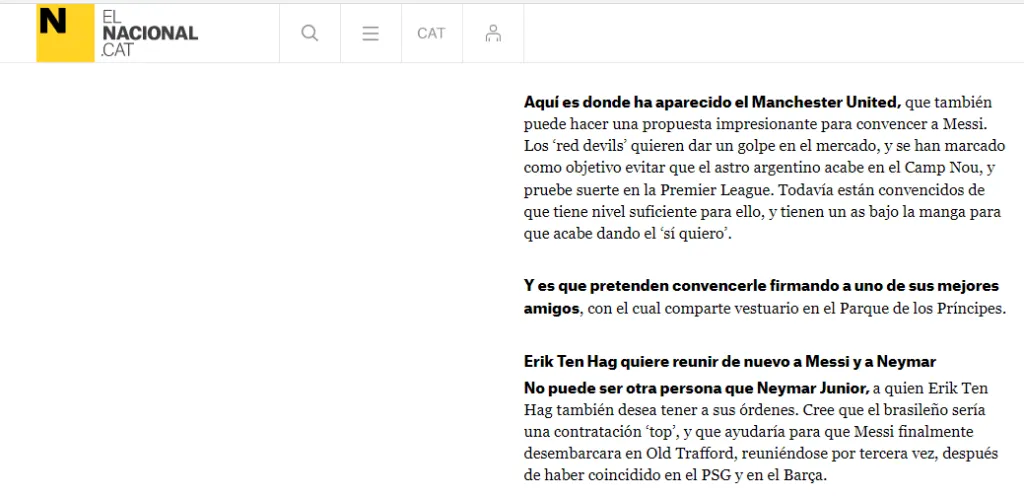 Otro que al parecer se sumó a este interés, es el fútbol de Arabia Saudita, para que la competencia con Cristiano Ronaldo siga vigente. Sin embargo, alguien que sorprendió para requerir los servicios de Messi, fue el Manchester United.