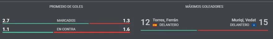 En general, también tenemos los promedios de goles tanto del Barcelona como del Mallorca y, también, los goleadores de cada plantel.