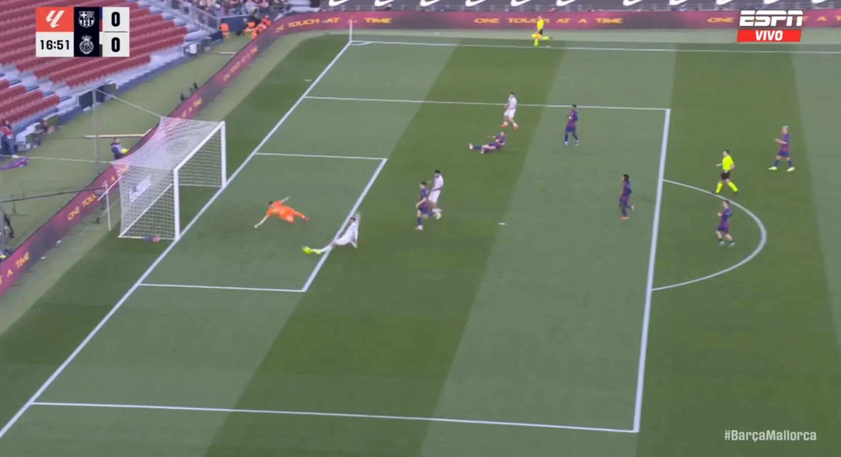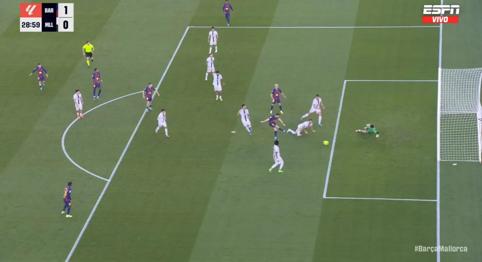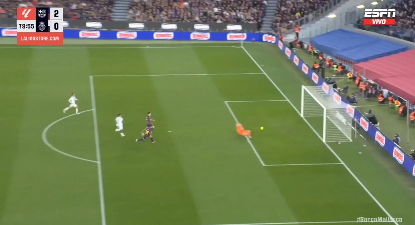 La repetición de la jugada demuestra la capacidad de Bernal en el tercer gol del Barcelona ante Mallorca.