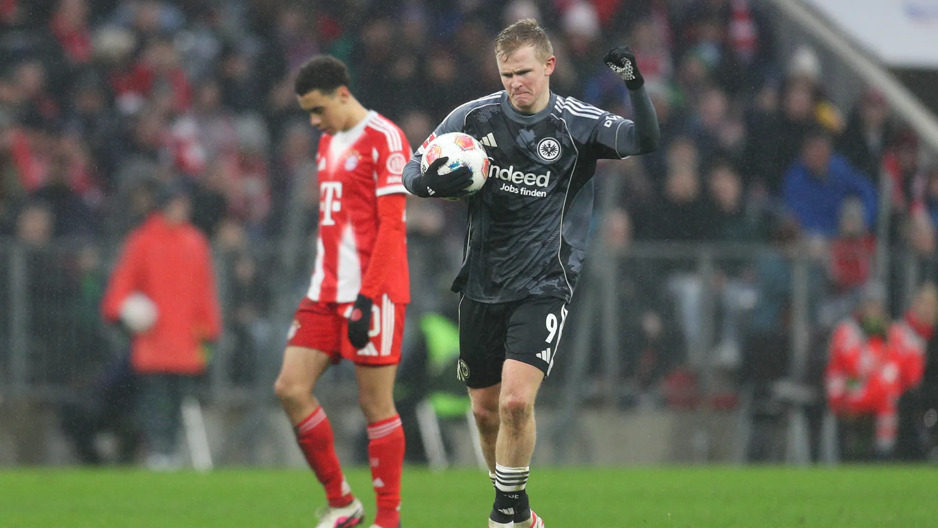 Sin embargo, a partir de ese momento, el equipo se cayó. Algunos errores impropios, otros más propios e insólitos, hicieron que el Eintracht se ponga en partido. Primero, con un penal por una infantil falta de Harry Kane sobre Hugo Larsson. Jonathan Burkardt lo cambió por gol.