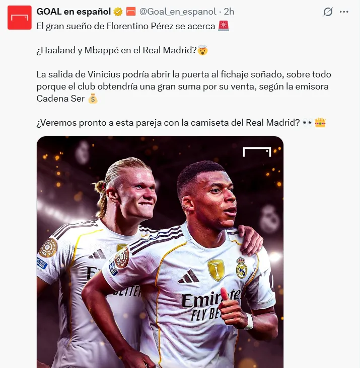 Cadena SER no descarta que el nombre de Haaland vuelva con fuerza al escritorio de Florentino si se concreta la salida del brasileño. El mensaje del Madrid, por ahora, es claro: no hay intocables si eso significa reforzar aún más la plantilla.