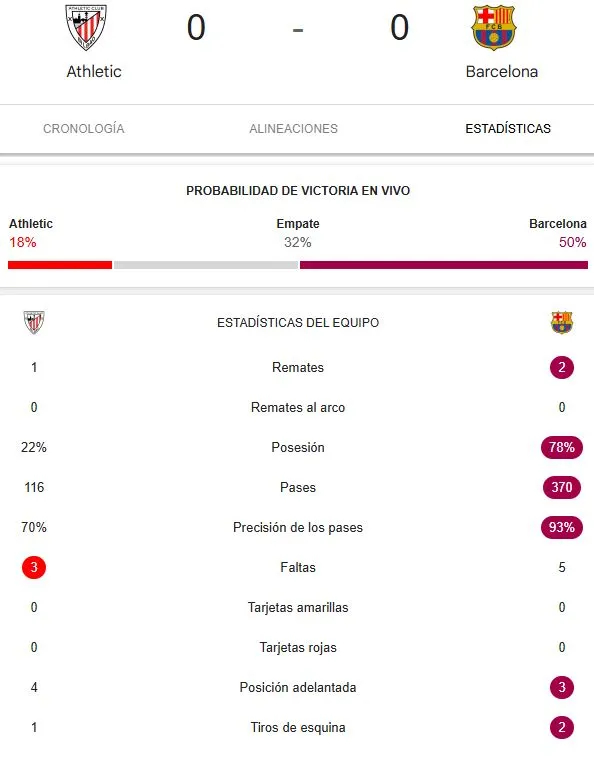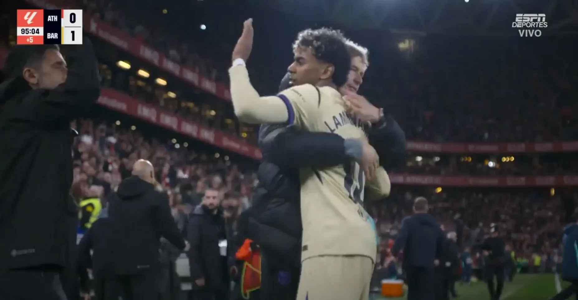 Muchas gracias por seguir con nosotros el partido entre Barcelona vs. Athletic Club, un cotejo con pocas emociones en el primer tiempo, pero que se puso intenso en el segundo. Gol de Yamal para el triunfo del Barcelona que es más líder que nunca y sus hinchas lo festejan todavía de visita.