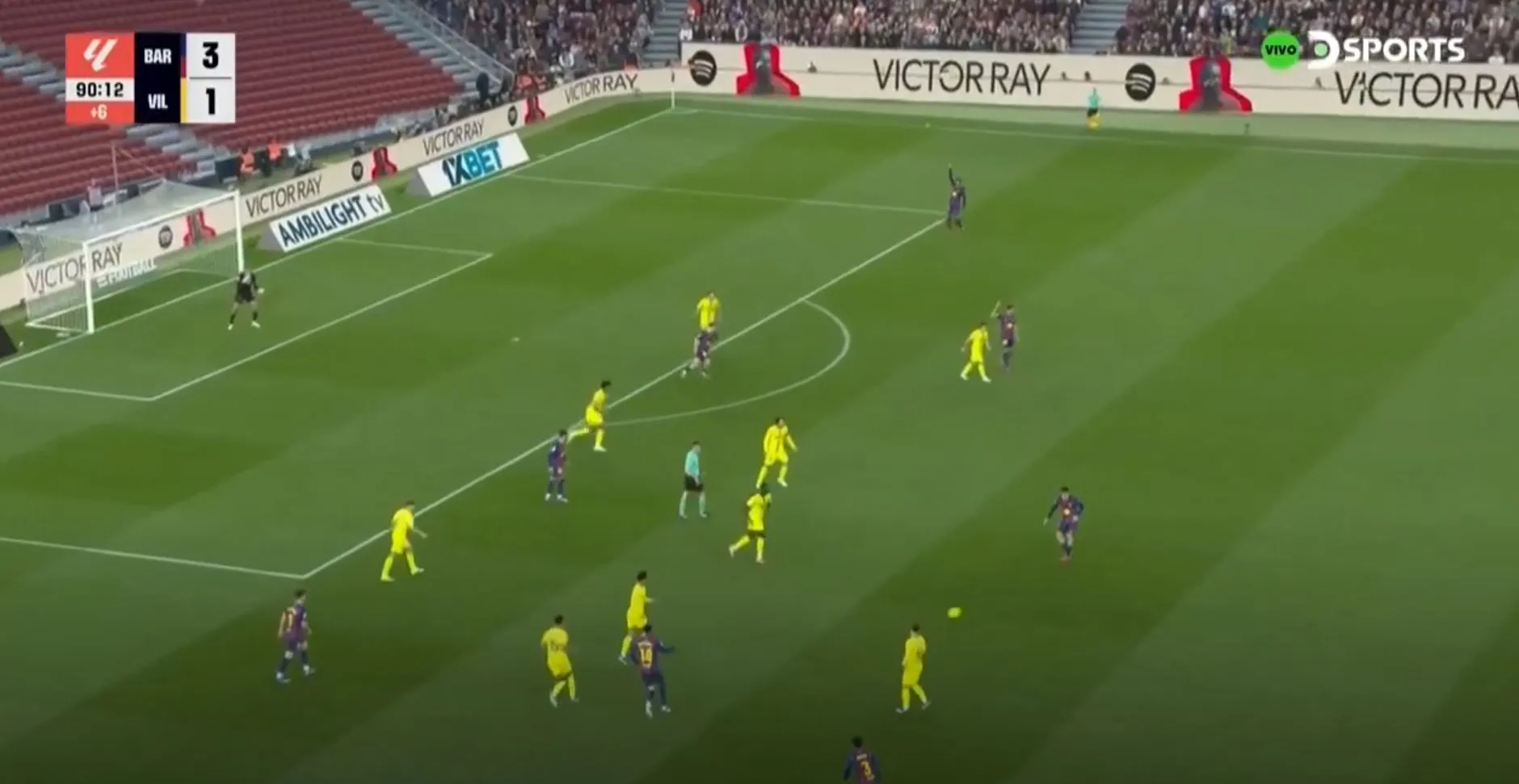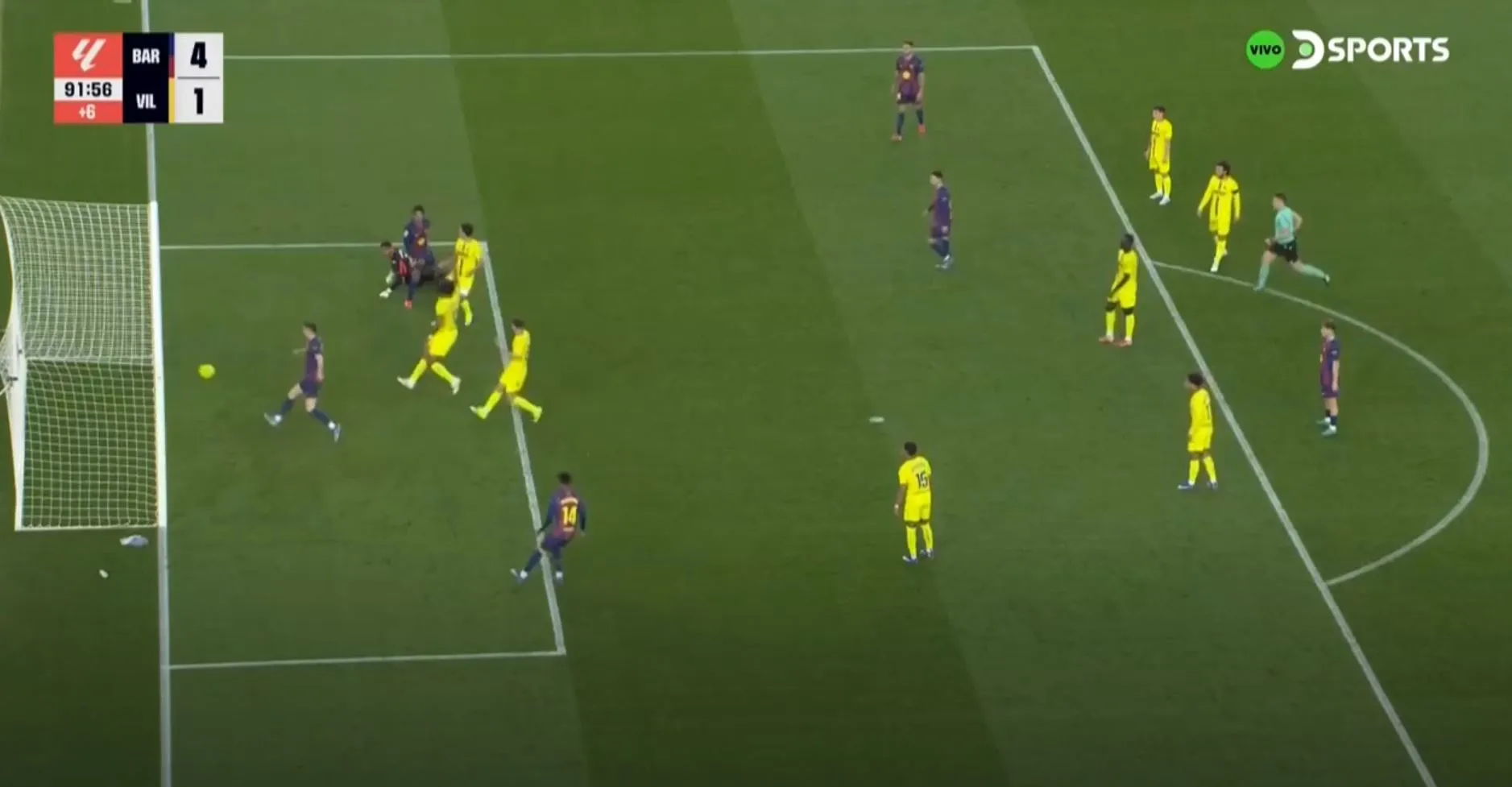 Lewandowski anotó el 4-1 tras pase de Koundé cuando estaba frente a la línea de anotación. Barcelona 4-1 Villarreal, partido terminado, resultado asegurado y cima bloqueada.