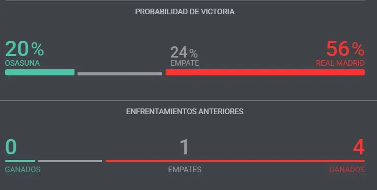 Entrando al área, ahora veremos cómo les ha ido a cada uno respecto al promedio de goles. Además, es claro que el Real Madrid por lo menos debería anotar un tanto ante Osasuna, en base a sus estadísticas.