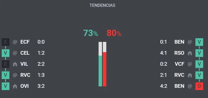 Cerrando la data estadística, también es importante conocer cómo le ha ido a cada club en sus últimos cinco encuentros, por ello tenemos la información.