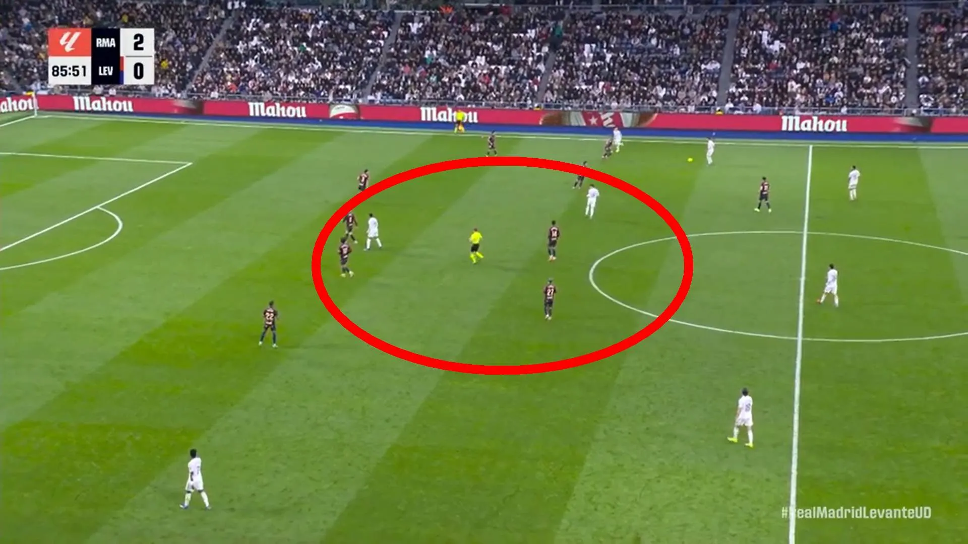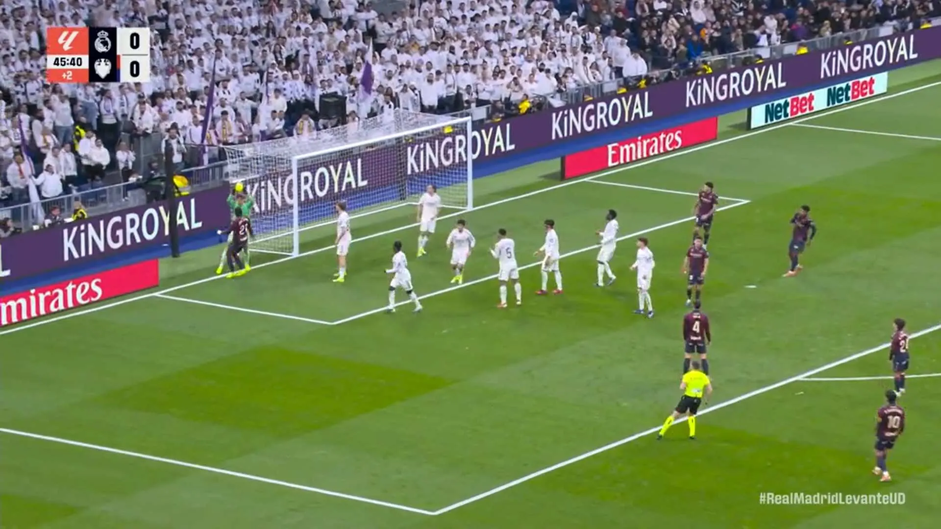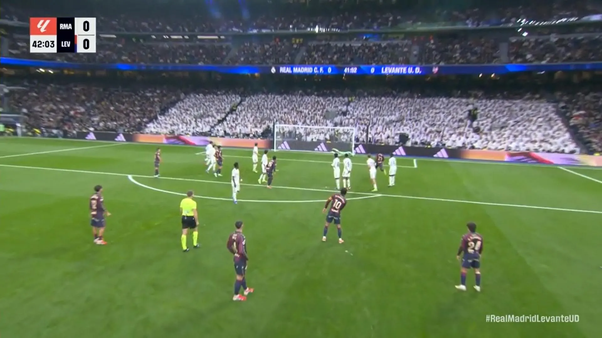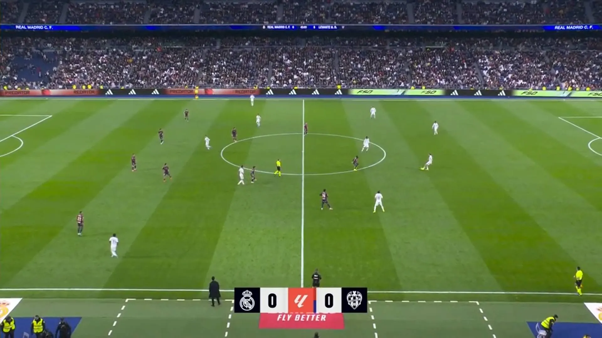 Para la segunda mitad era evidente que el Madrid sufría de juego creativo y por eso ingresaron Arda Guler y Franco Mastantuono. Estos cambios le pusieron un nuevo rostro al Real Madrid, que empezó a llegar al área del Levante y comenzó con las acciones de peligro.