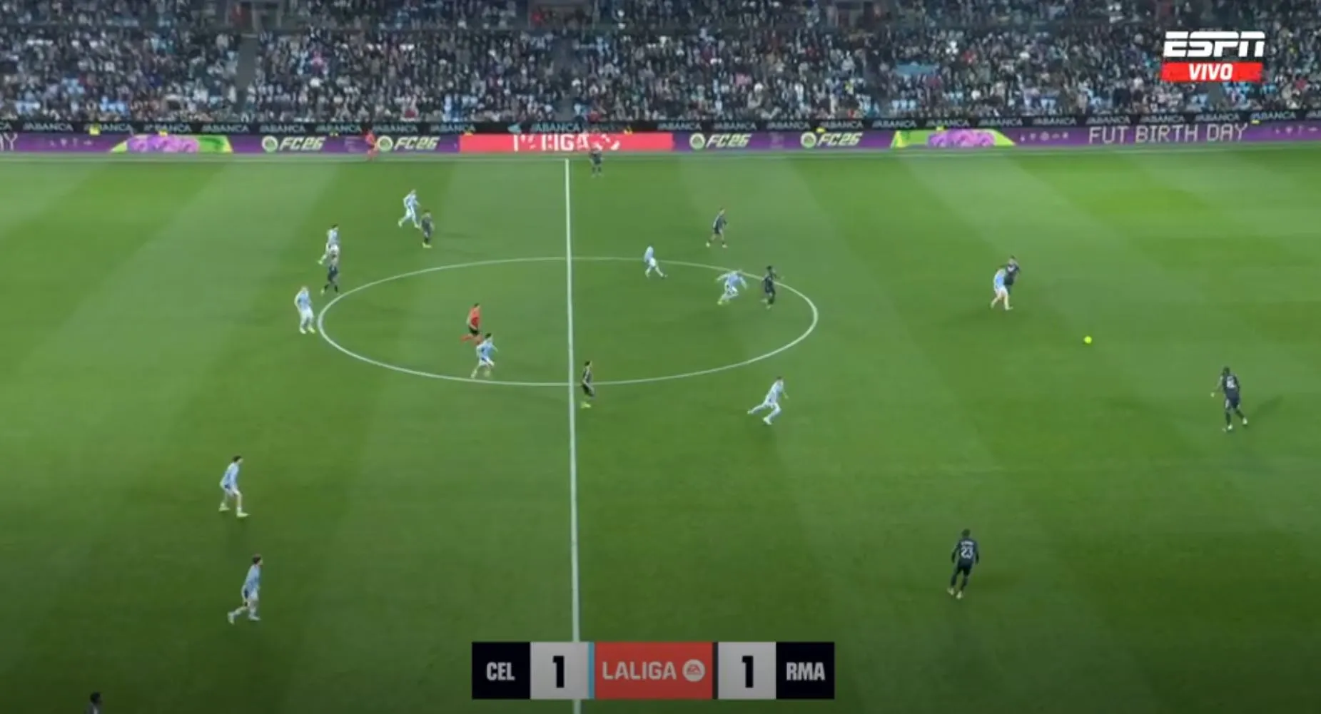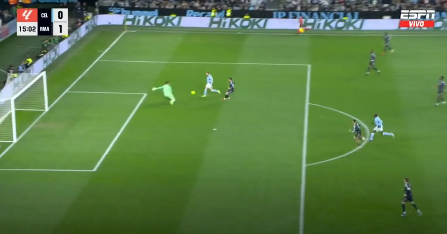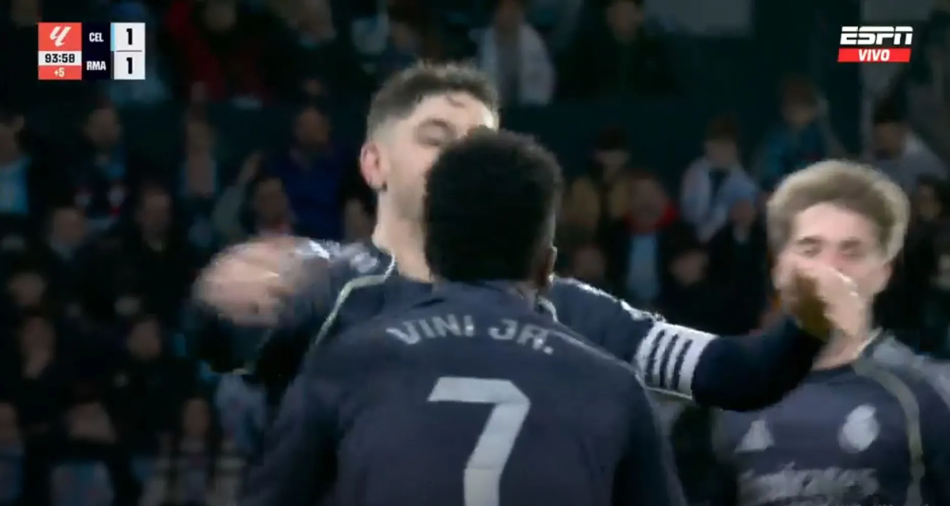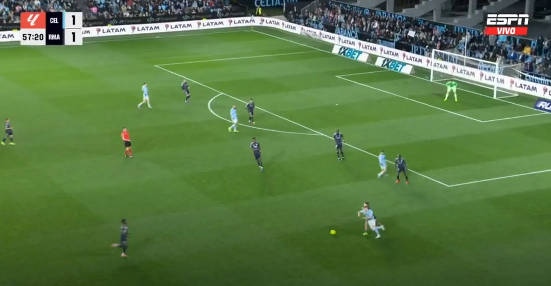 Así terminó el primer tiempo, con un gol para cada uno, pero con la sensación que Celta podría hacer más daño si se ponía serio y que Madrid peleaba contra sus propias limitaciones. No fue hasta los instantes finales cuando Federico Valverde, más por empuje que por táctica, remató, la pelota se desvió e ingresó al arco del local.