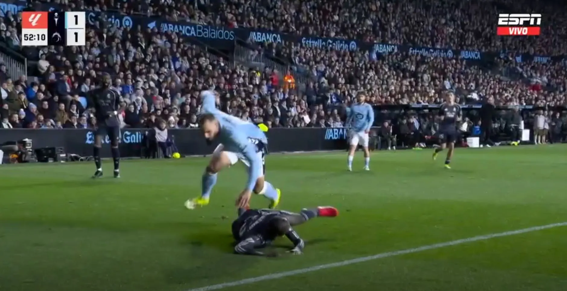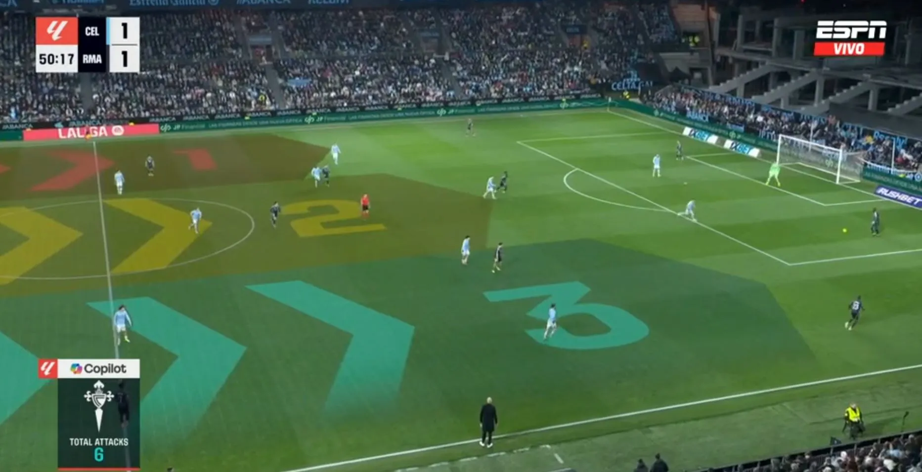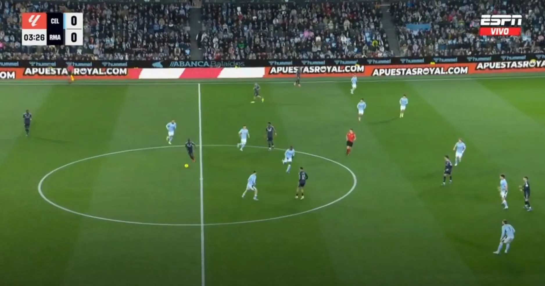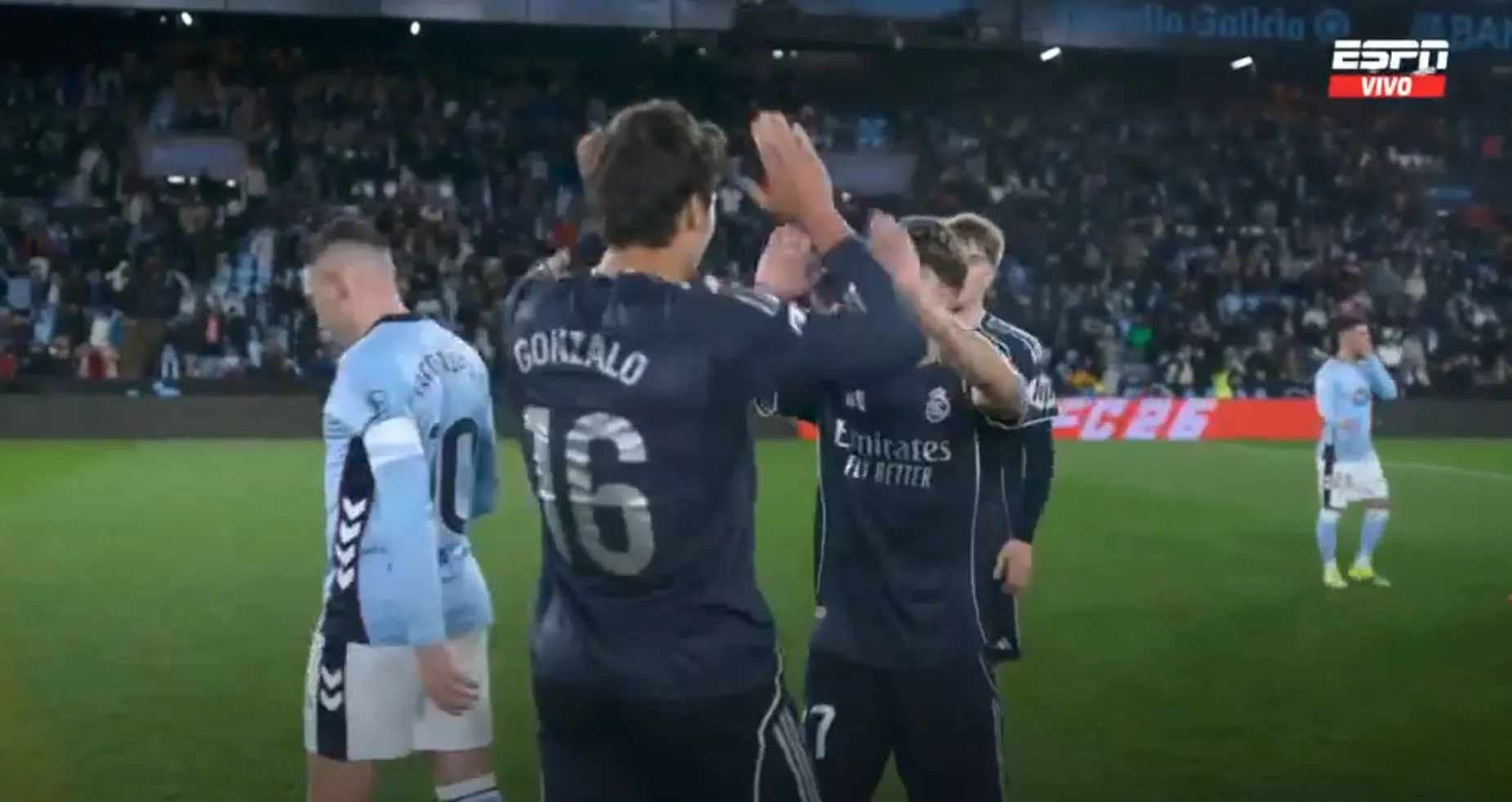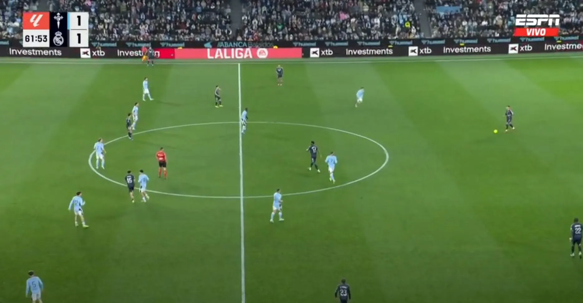 Así terminó el primer tiempo, con un gol para cada uno, pero con la sensación que Celta podría hacer más daño si se ponía serio y que Madrid peleaba contra sus propias limitaciones. No fue hasta los instantes finales cuando Federico Valverde, más por empuje que por táctica, remató, la pelota se desvió e ingresó al arco del local.
