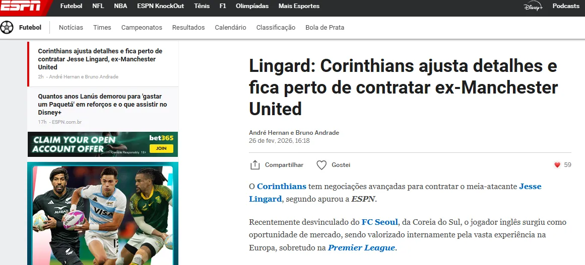 - Jesse Lingard negocia su llegada al Corinthians de Brasil para la temporada 2026.