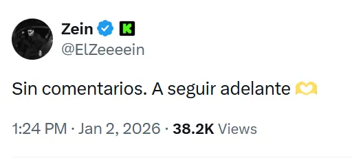 Luego de que se hiciera público el conflicto y las salidas de los cuatro jugadores, El Zeein, que también es presidente del equipo peruano en la Kings World Cup Nations, se pronunció brevemente en sus redes sociales.
