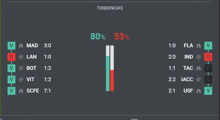 Mostramos una gráfica de los últimos 5 partidos que tuvieron los equipos y qué resultados consiguieron. ¿Quién se quedará hoy con la Recopa Sudamericana?