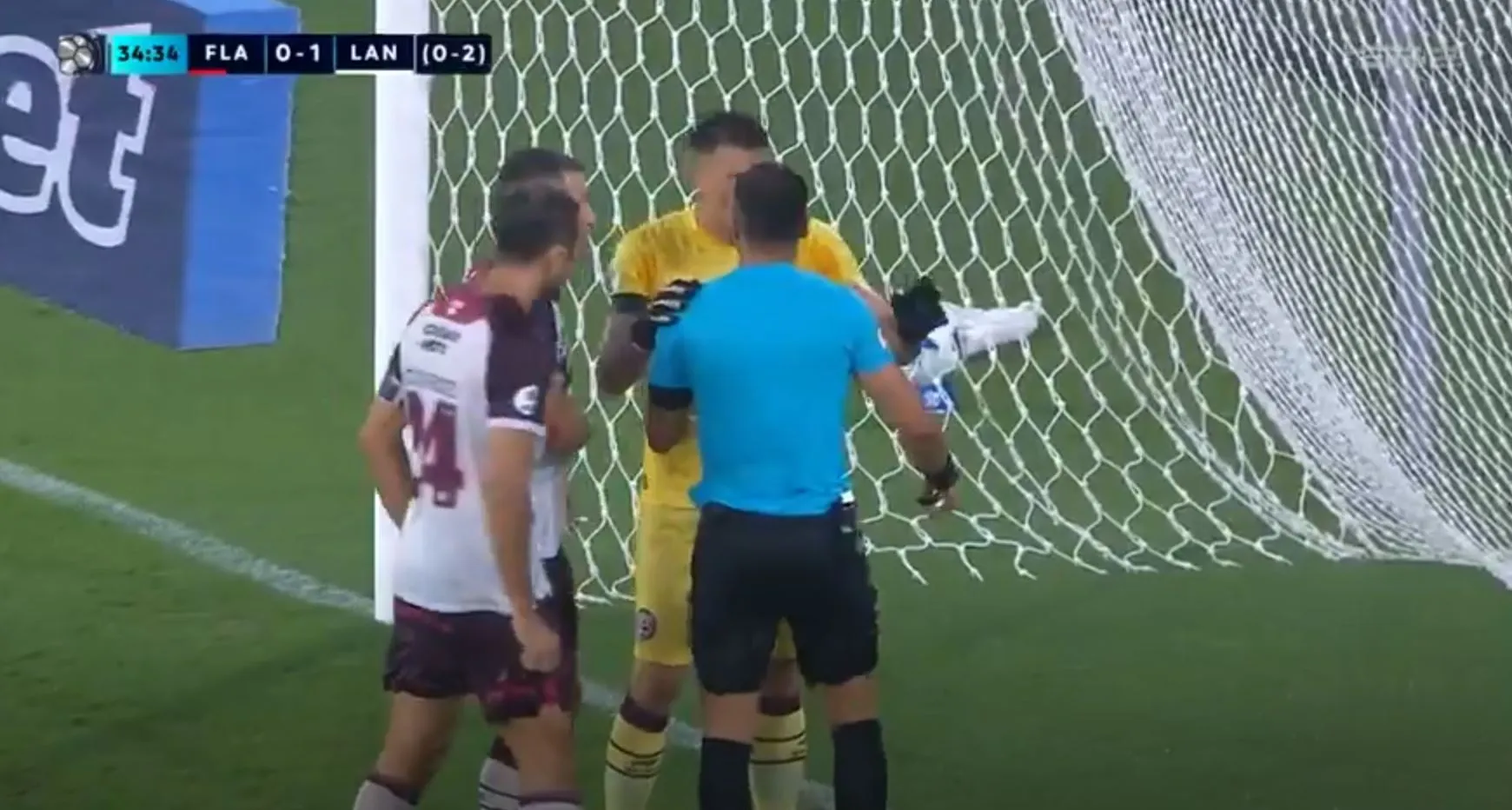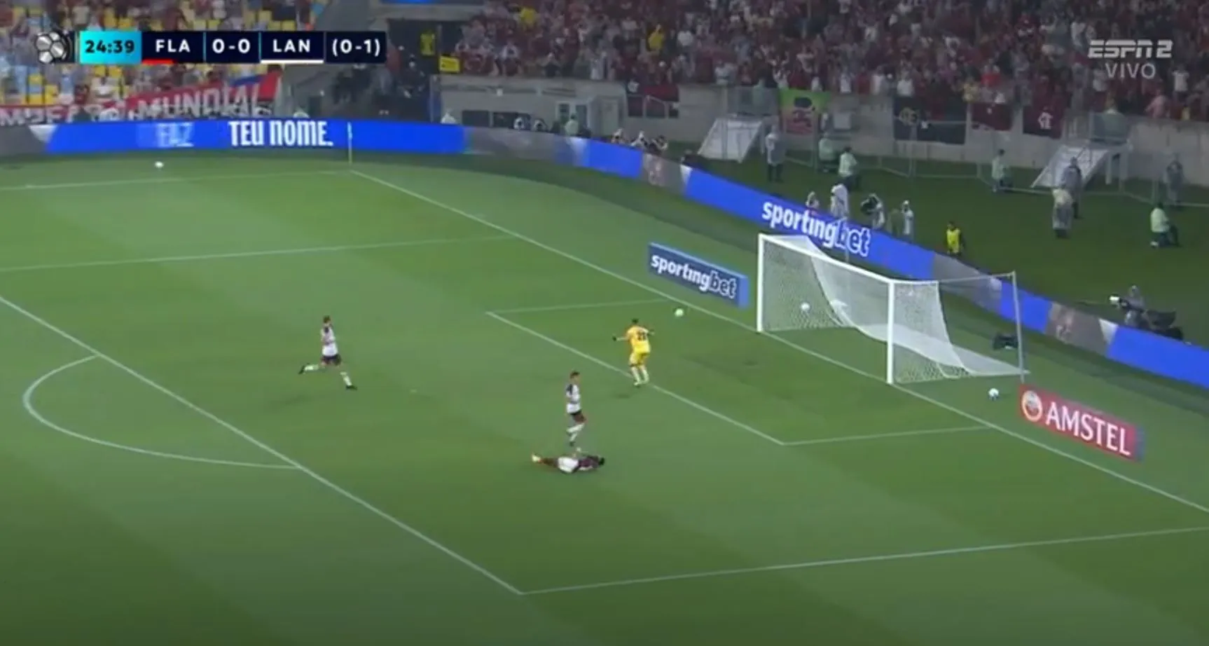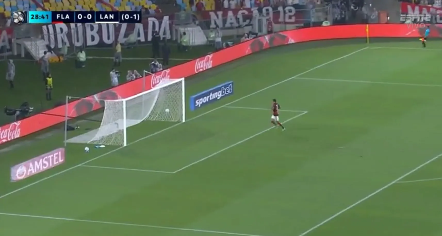 Con un potente disparo de Carrascal, Flamengo buscó el 1-0, pero el portero Nahuel Losada desvió la pelota y salvó a Lanús.