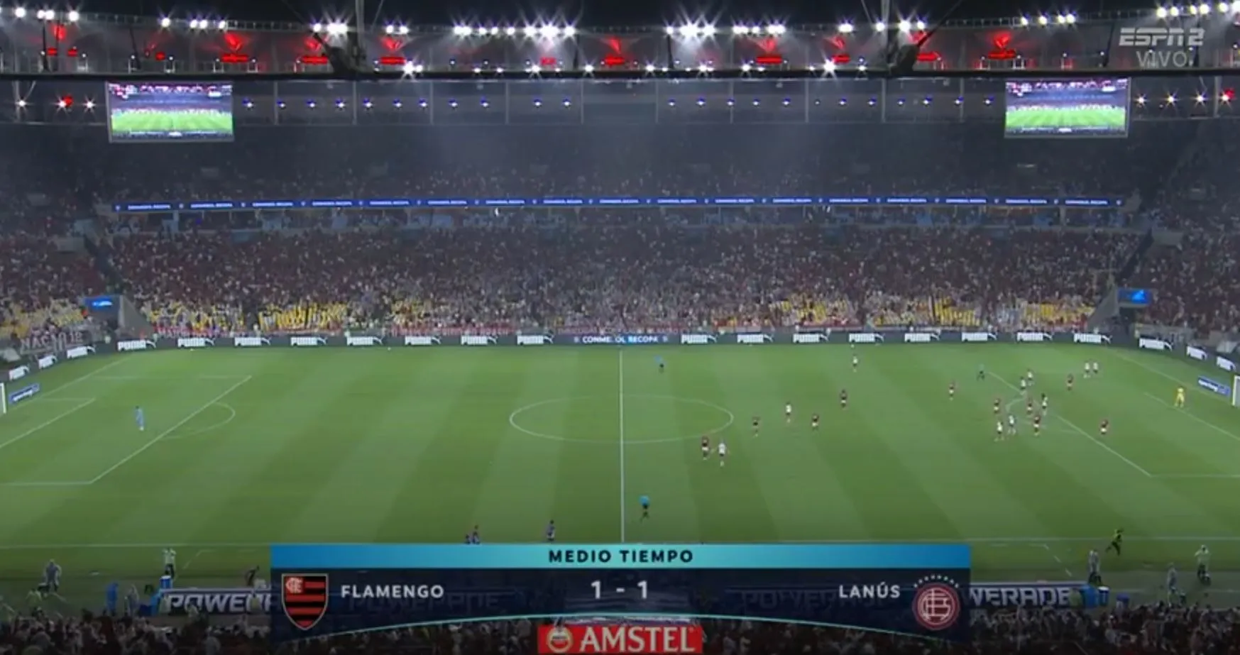 Ya rueda la pelota en el Maracaná y comenzó el segundo tiempo del Flamengo vs. Lanús en el Maracaná. Hay que mencionar que si Lanús gana es campeón, si Flamengo gana por dos goles es campeón y si hay empate, habrá tiempo extra.