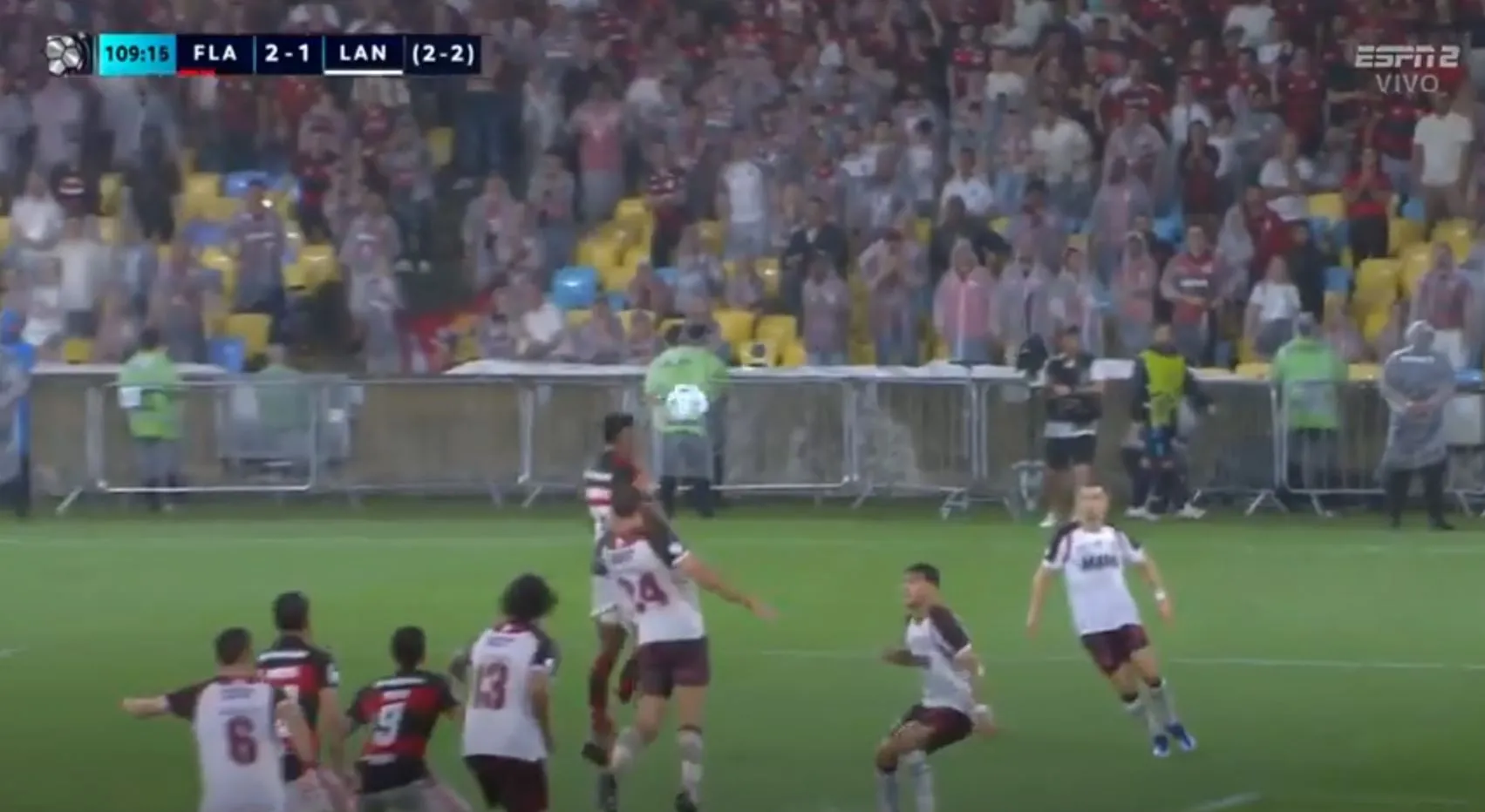 Ya con el resultado del 2-1 a favor de Flamengo, la prórroga era necesaria, pero nadie imaginaría que Lanús conseguiría dos goles. El primero fue de José María Canale a los 118 y cerró la gesta Dylan Aquino a los 122.