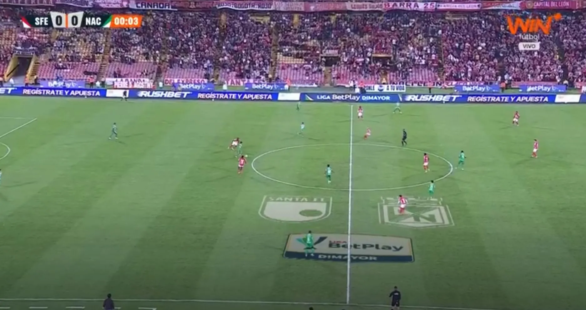 Rueda la pelota y ya comenzó el complemento entre Santa Fe vs. Atlético Nacional en el Campín.