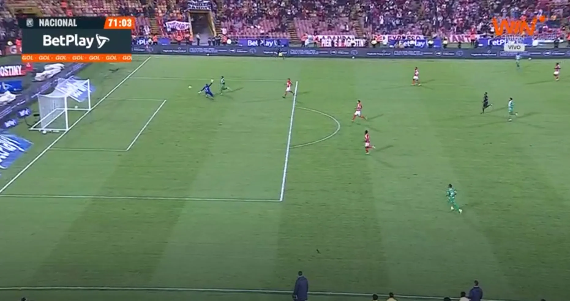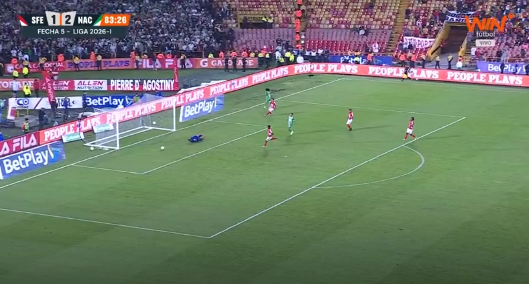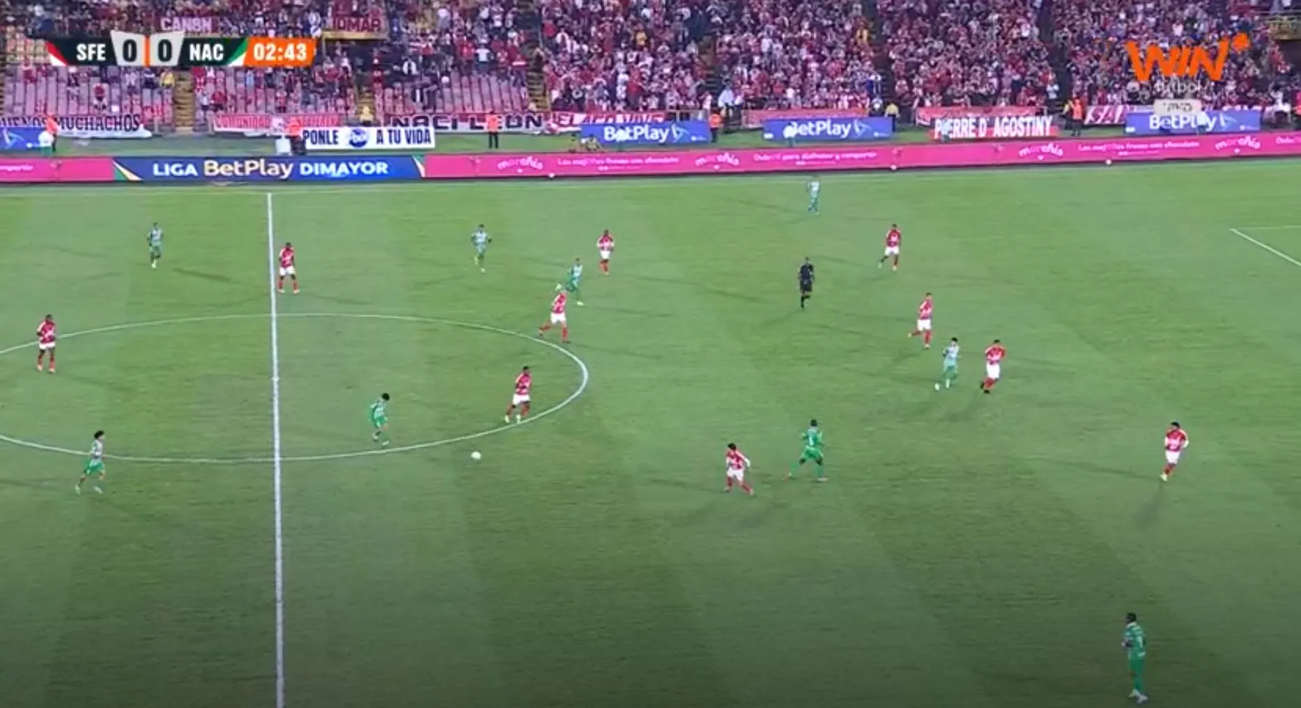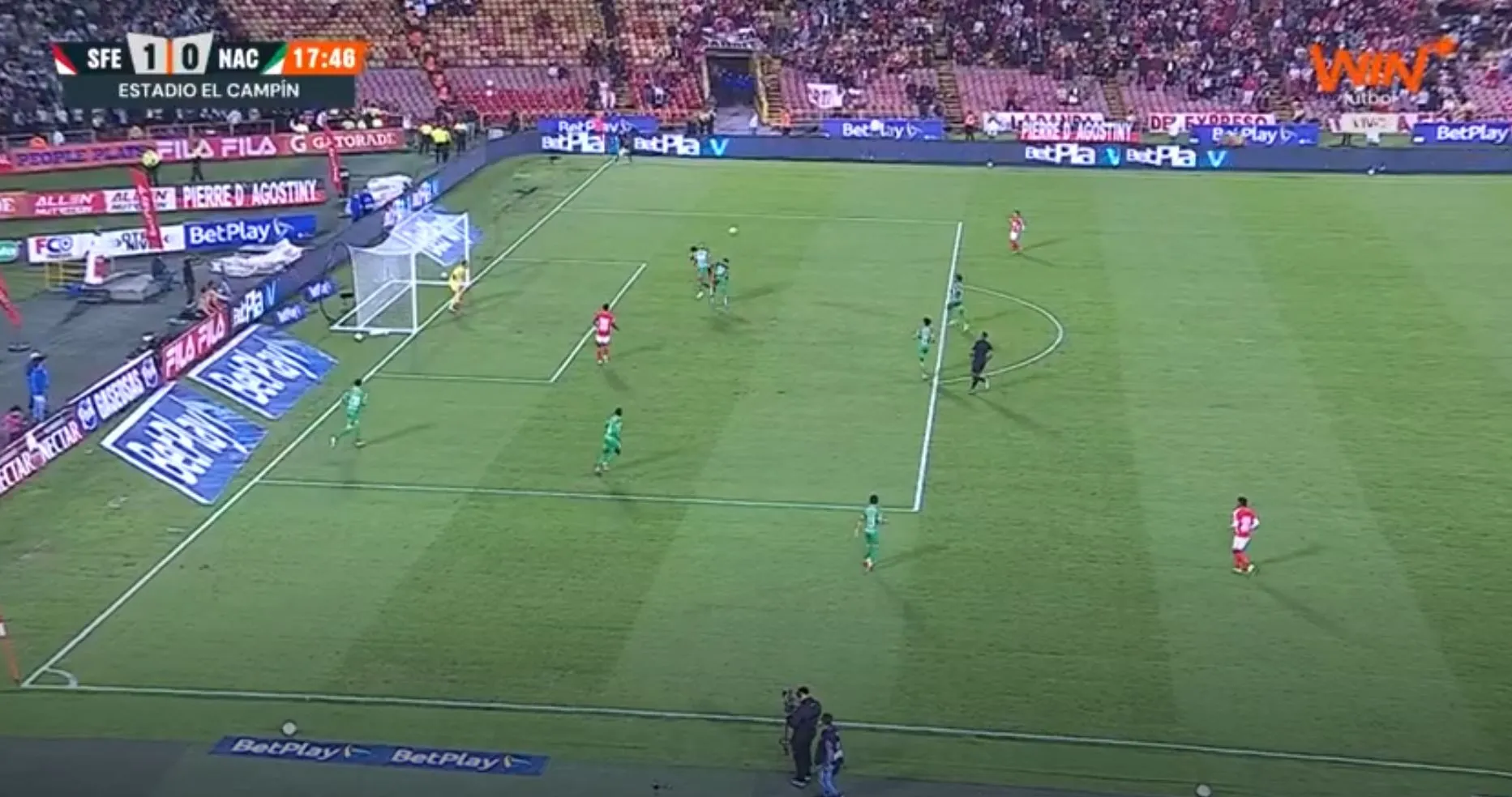 Atlético Nacional buscaba el tercero del partido, pero el balón se fue cerca del palo. Seguimos 2-1 a favor del 'Verde' en el Campín ante Santa Fe.