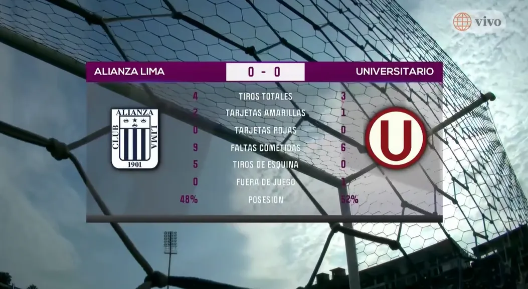 Según el tablero, Universitario y Alianza Lima jugarán cuatro minutos más.