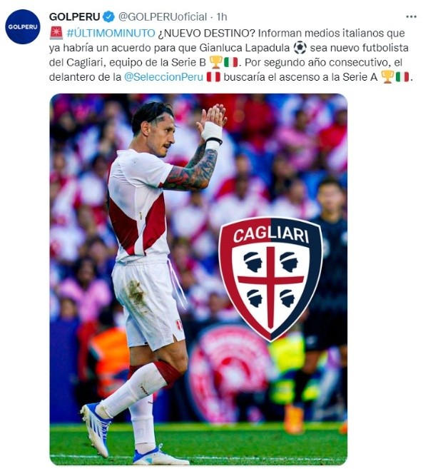 Lo claro es que, si se da el fichaje de Gianluca Lapadula al Cagliari, el delantero de la Selección Peruana tendrá que disputar una temporada más la Serie B. Ahora, otro asunto podría ser esperar alguna oferta de clubes de la Serie A: como los recién ascendidos Lecce, Cremonese o Monza, pero todo esto en el terrero de la especulación.